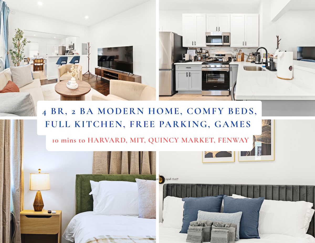 Luxury 3BR near Harvard/MIT w/ King Bed+Parking!