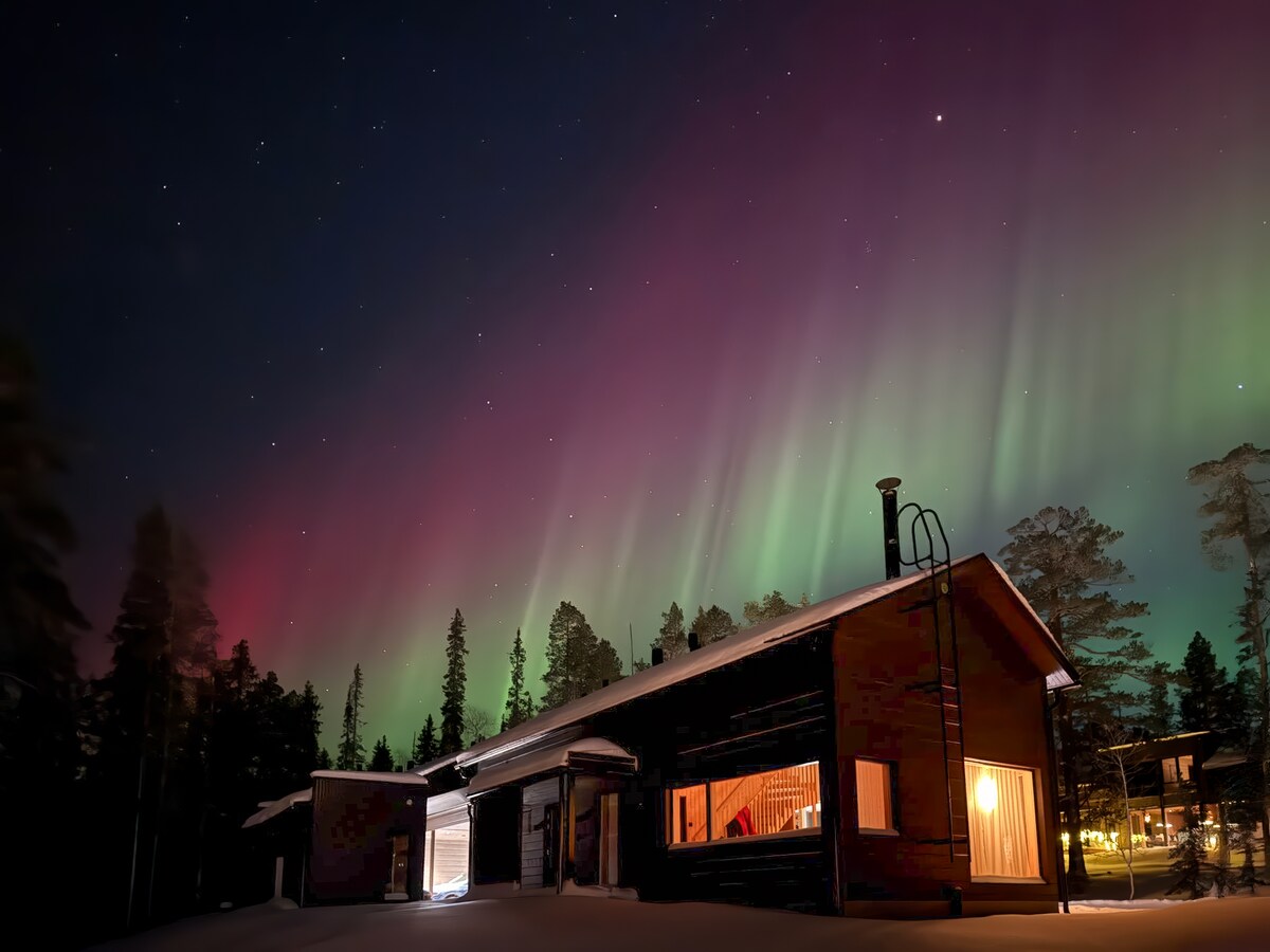 Welcome to a cozy 46-square-meter cottage next to the Torne River with walking distance to Icehotel in winter. The location is secluded and perfect for discovering the northern lights. Proximity to airport, grocery store and train station, but at the same time undisturbed location. Welcome to a cozy cabin on 46 square meters close to the Torne river. The location of the cabin is very good for spotting northern lights and within walking distance to the Icehotel across the river during winter.