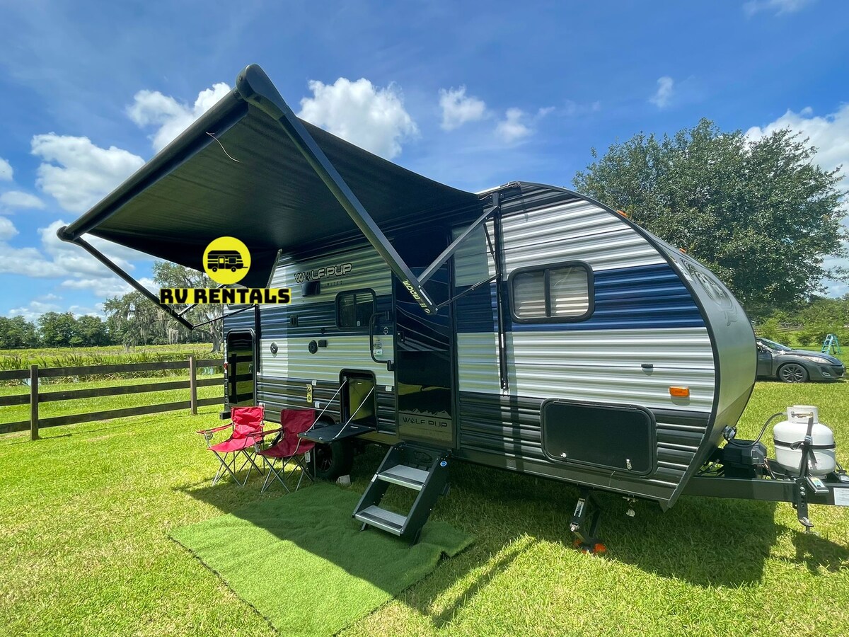 Reconnect with nature at this unforgettable escape! Welcome to our beautiful 1 Queen/ 2 Twin Bed on site RV Rental at River Ranch that sleeps 4 comfortably. GOLF CAR INCLUDED! This privately owned RV is TURN-KEY and fully stocked. Full bathroom, fully equipped. Outdoor space is perfect for entertainment with a GAS GRILL, sink, furnishings, swing, and FIRE PIT. Walking distance to the pool! WIFI INCLUDED!Enjoy the amenities River Ranch offers, live RODEO on Saturdays, an Adventure Park and more..