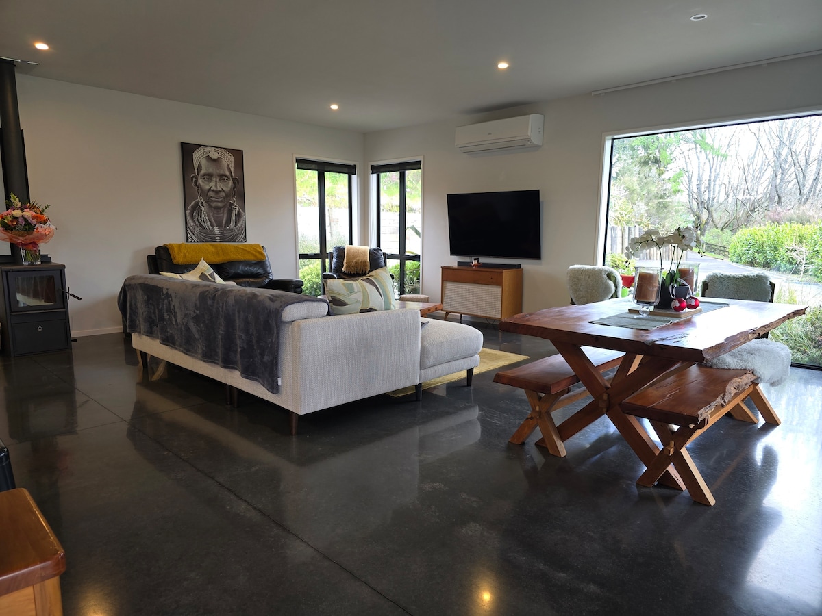 Our family of 4 would love to host you in our newly built bnb. Enjoy your own private setting with a peaceful view and open living. After exploring and enjoying the endless activities nearby (see notes) you can relax in the spa, light the outdoor fire, and make yourself at home. Suitable for couples wanting a relaxing break. House is situated on our section but it is fully self contained and private/fenced off.