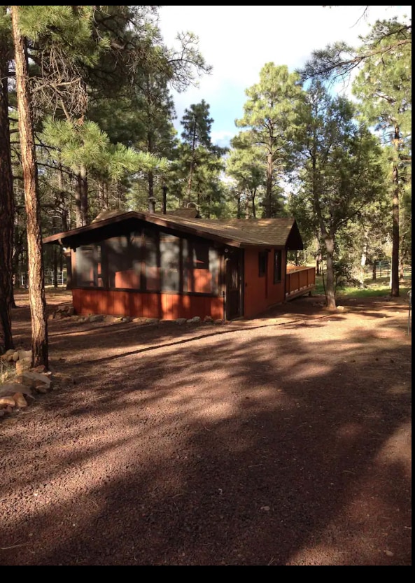 Stay in a rural, cozy cabin just 30 minutes south of Route 66. The Petrified Forest as well as local lakes, streams, and the White Mountains are just a short drive away. Situated amongst pine trees, this private, single-level guesthouse for 2 (plus 1 infant) offers comfort, privacy, and a taste of nature. Your 30-pound or less, well-behaved dog is welcome and will enjoy a fenced yard. A microwave, frig, Keurig, toaster oven, and outdoor griddle are provided for your convenience.