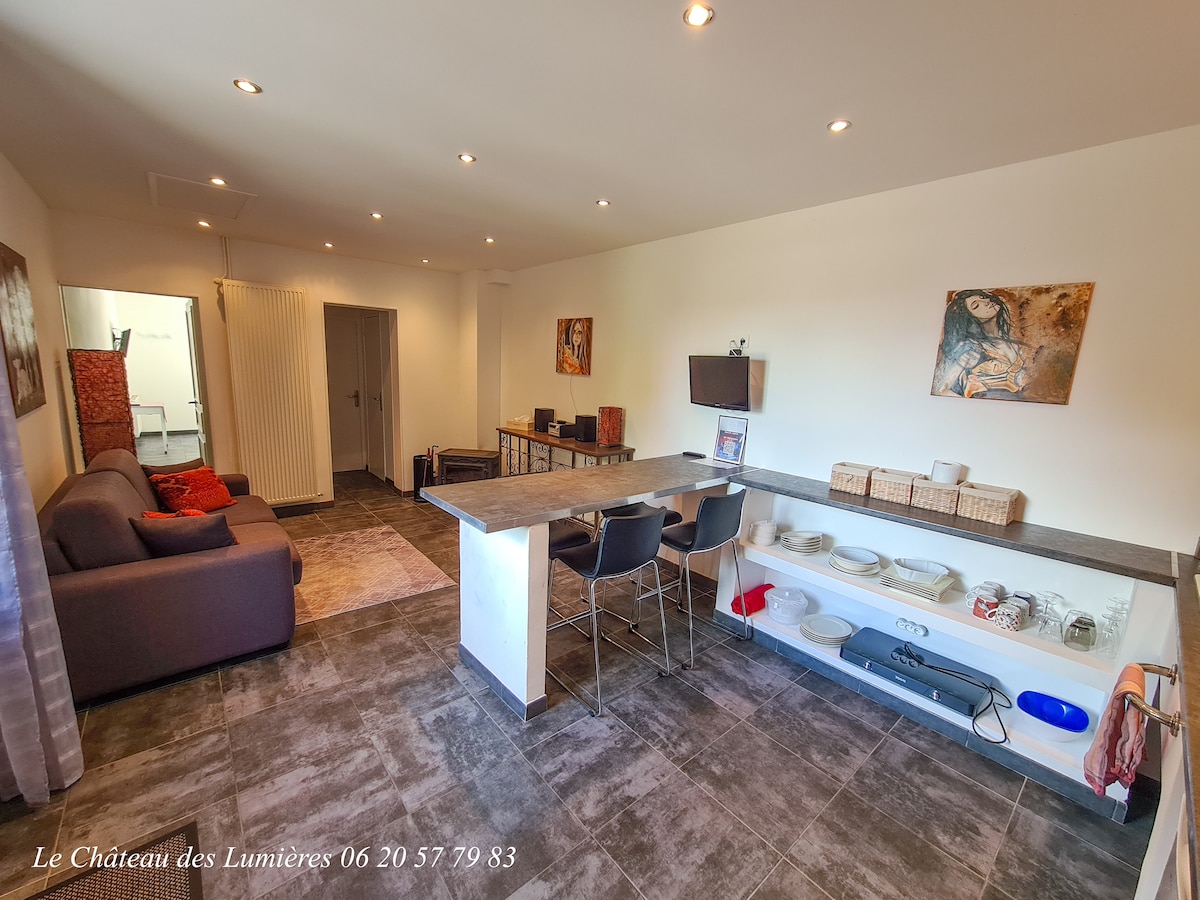 Welcome to Le Parisien, the former beach bazaar welcomes you for your stay. You will have a beautiful area of 52 m2 including a fully equipped open kitchen overlooking a large living room area with very comfortable sofa bed and armchair, a flat-screen TV and free Wi-Fi. The apartment is on the ground floor. The beautiful room has a desk and a 160 bed. You will also find a shower, towel dryer and washing machine.