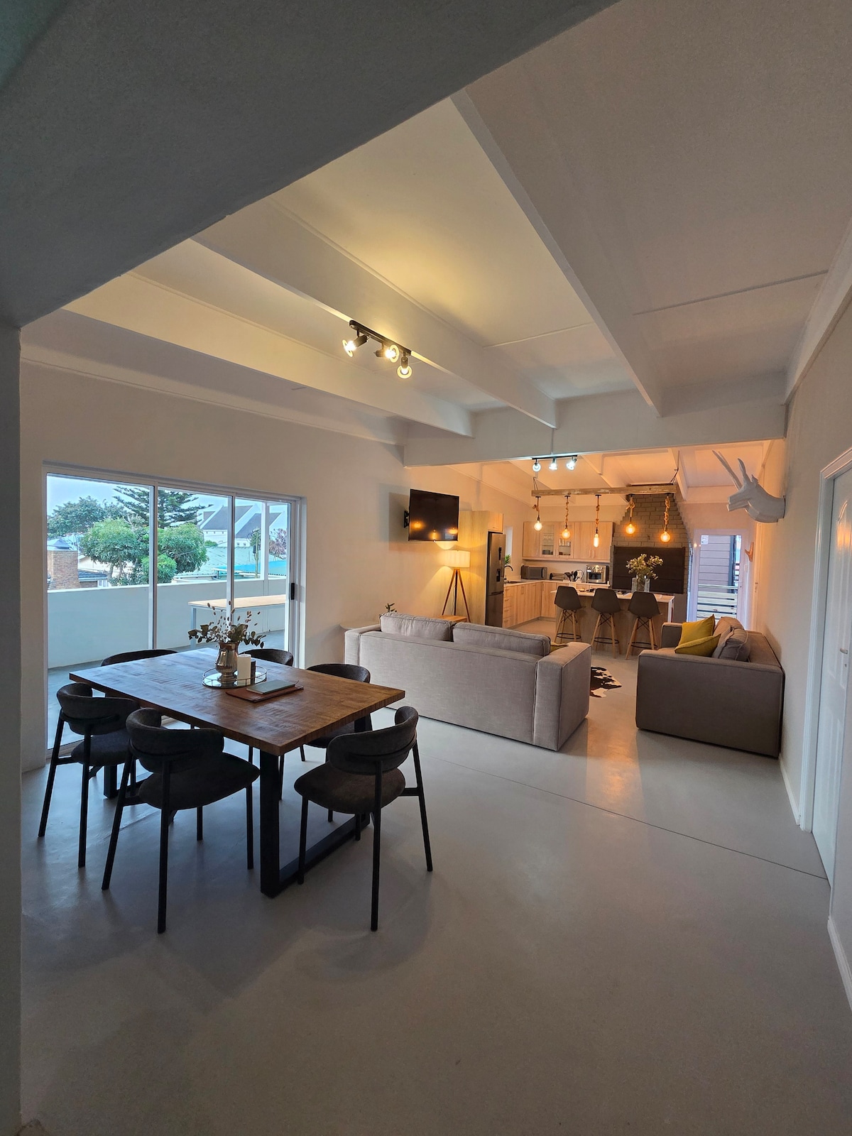 Enjoy a stylish experience at this centrally-located place. This house boasts exquisite finishing's, ultra modern kitchen. Modern industrial look and feel, family friendly too. Double storey house with en-suite bathrooms to each bedroom. Unique built in hammock on the second floor. Beach front home with private walk way. Indoor fireplace/braai for windy days and fireplace for those chilly rainy ones. Entertainers dream. Large dining/Lounge area for social interaction's. Perfect holiday home