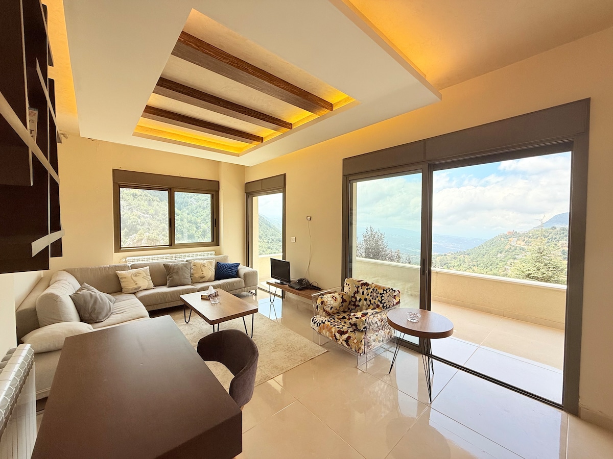 All reservations include concierge, 24/7 electricity, trip planning, and free parking. ā "Beautiful log house with pristine views! Several trails for hiking in the area, at walking distance. Highly recommended.ā 140m² duplex villa with large terrace and breath taking views. ā No checkout rules ā 24/7 Electricity & Heating ā Baby Crib and High Chair Free of Charge Upon Request ā 5 Minute Drive From Mzaar Ski Resort ā HD TV with Netflix ā BBQ Grill with Lounge Area