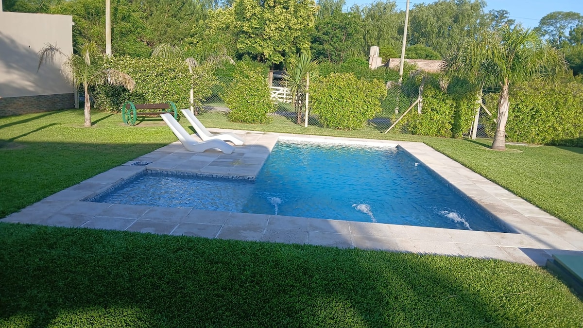 Located in the Quintas de Chivilcoy area, a 10-minute drive to the commercial center, this accommodation is ideal for a relaxing and quiet stay. The house has two bedrooms, one with a double bed and another with three single beds, an open concept kitchen-dining room, a full kitchen with a gas oven, a breakfast bar, a refrigerator, and everything you need for cooking. Two full modern bathrooms with comfortable showers, green areas, swimming pool and grill.