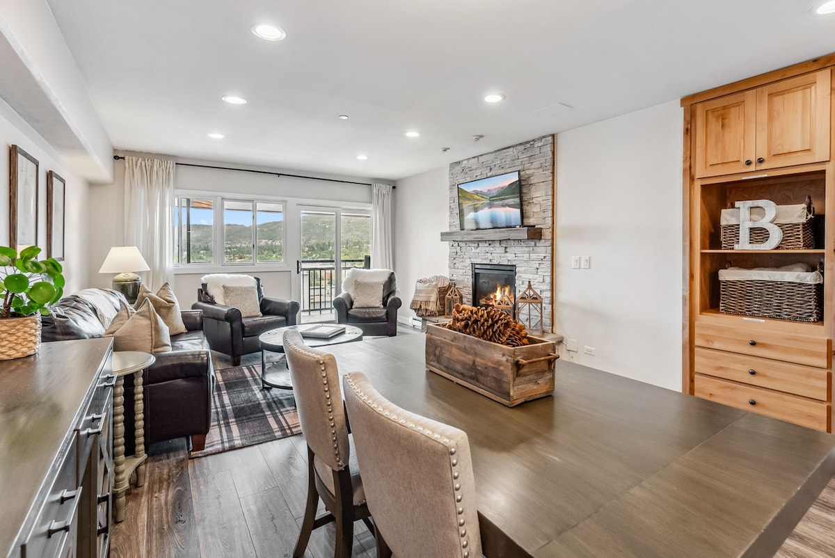 Newly renovated Keystone condo with vaulted ceilings, modern mountain décor, and a wood-burning fireplace. Enjoy a fully equipped kitchen, luxe living area, and serene bedroom retreat, all just minutes from the lifts, trails, and village dining. Remote workers will appreciate the fast WiFi for work & relaxation. With amenities like an indoor pool, hot tubs, dry sauna, and a private ski locker, this is the ideal spot for couples & young famlies. Rental Permit BCA-99823