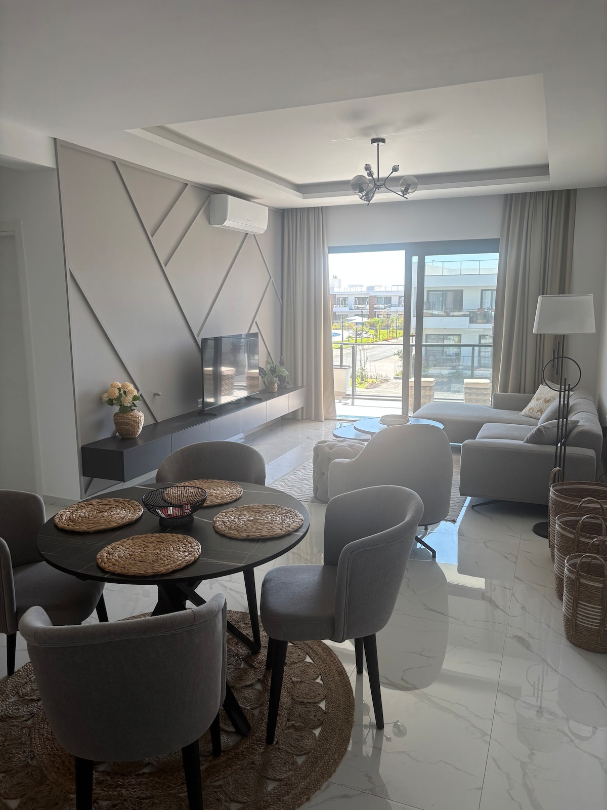 Located in the world's best seaside, İskele Long Beach, Long Beache, our luxurious and stylish apartment is located in a zero location. Long Beach, which has been selected by Borbes magazine as the most beautiful and unique sea in the world, offers many activities where you can bike on the bike path, while enjoying the magnificent beaches. Our apartment, which is within walking distance of restaurants and bars, will allow you to have a peaceful holiday with its magnificent location.