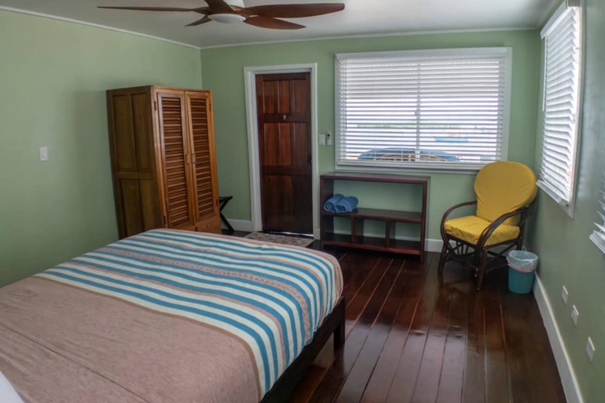 - house built right over the Caribbean sea - bedroom with double sized bed & balcony - private bathroom (hot water shower) - air conditioning included - a la carte breakfast included (between 8 - 9:30 a.m.) - guest kitchen - sunset orientated (yes, we're facing west! :)) - ocean access from our private dock - in-house kayak, bike and snorkel gear rentals - gay-friendly place