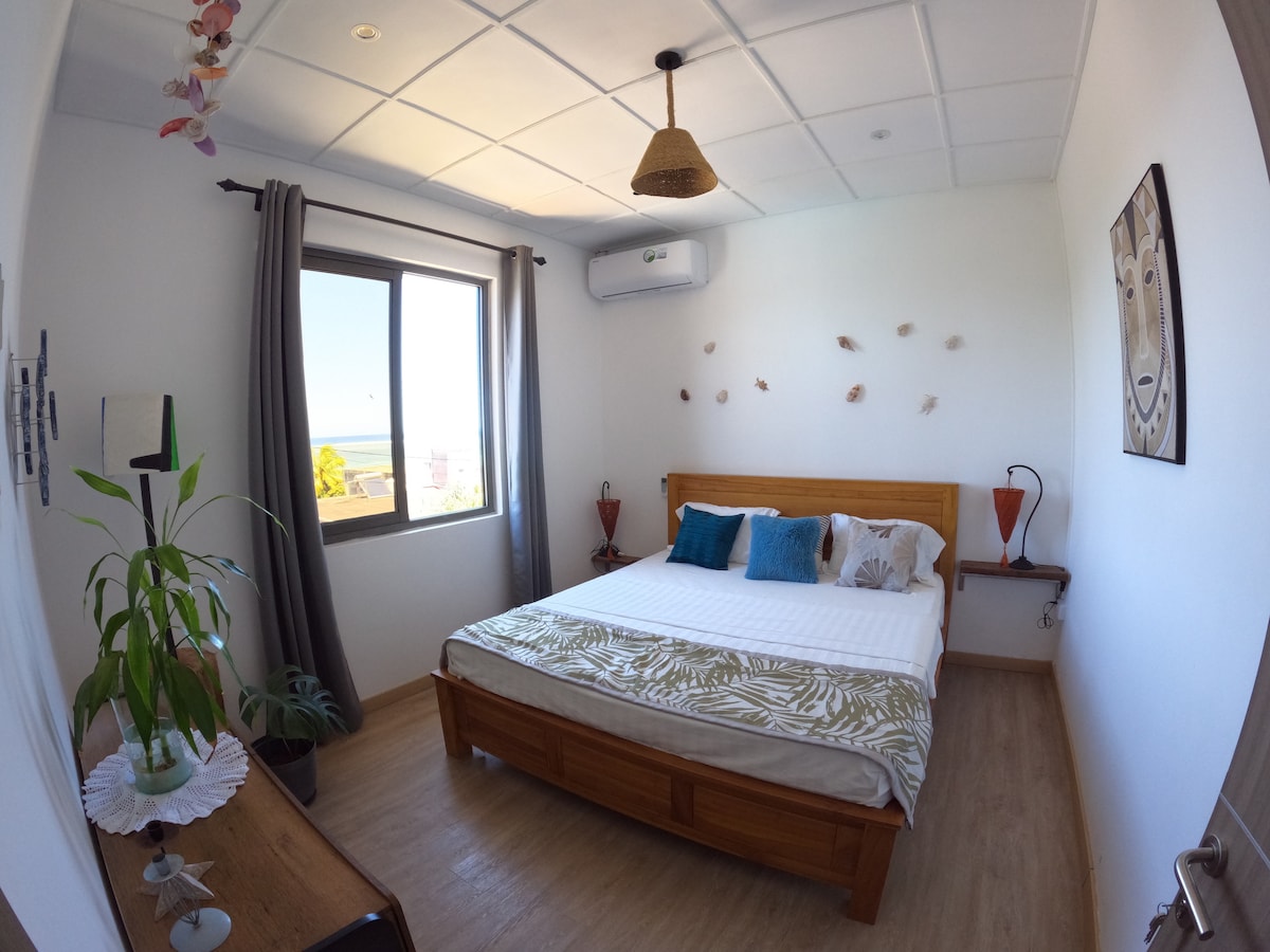 Beautiful accommodation with quality kitchen and equipment and with a beautiful terrace facing the sea. It is not possible to swim due to the presence of algae depending on the season, but peace and quiet are at will. There are views of the islands as well as beautiful views of Mount Lion. You will have the opportunity to be advised on your leisure activities and to be driven if you wish to book a vehicle. Esny Point Airport and Lagoon 15 min drive.