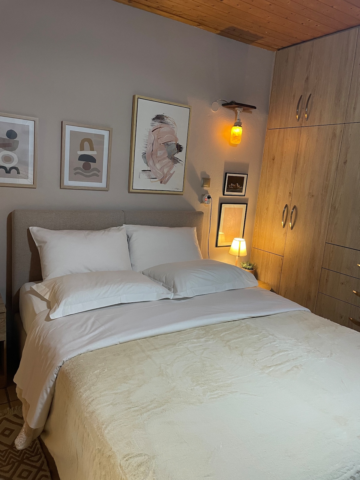 Stay with the whole family in this wonderful house with plenty of space for moments of joy! We just renovated, furnished, & decorated this amazing 150 sq. m. house on the 2nd floor in a boho style with relaxed colors and artistic paintings on the walls. It is located right across from the center of Chalkida in a quiet residential neighborhood and is fully equipped. This stylish, bright, and airy 150 sq. m house has verandas all around, 3 bedrooms, and a loft playroom/bedroom for 2 more people!