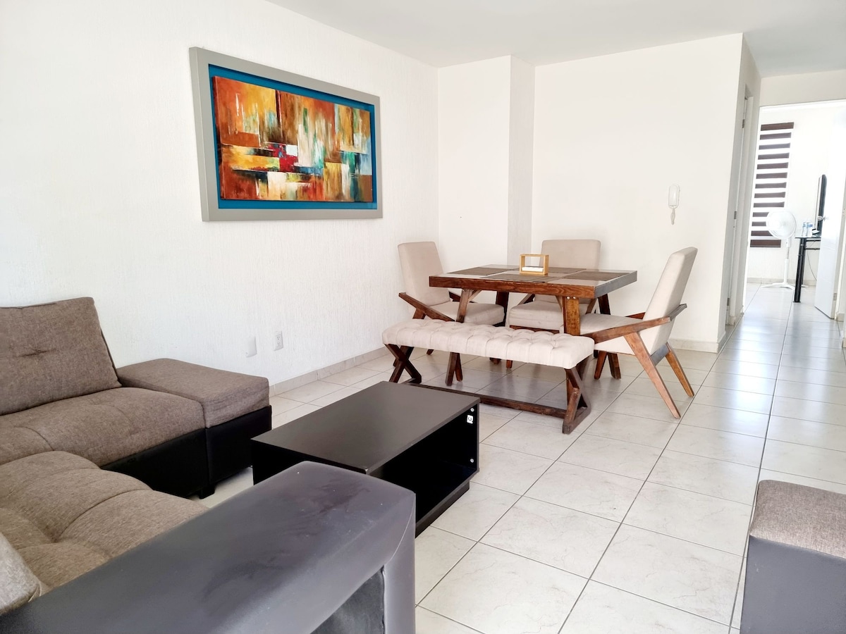 Relax in this quiet and stylish space. Take a getaway and relax for a few days very close to Guadalajara. Just 10 min from the hot springs and 20 min from Ajijic. The Condominium has a swimming pool, terrace, parking, bathrooms and showers and a few steps from the seafood. The apartment has 2 rooms with Queen size beds, 2 full bathrooms, 1 sofa bed, 1 Sofa bed, Internet service Wifi and cable TV, Xbox console, Appliances and everything you need for your stay.