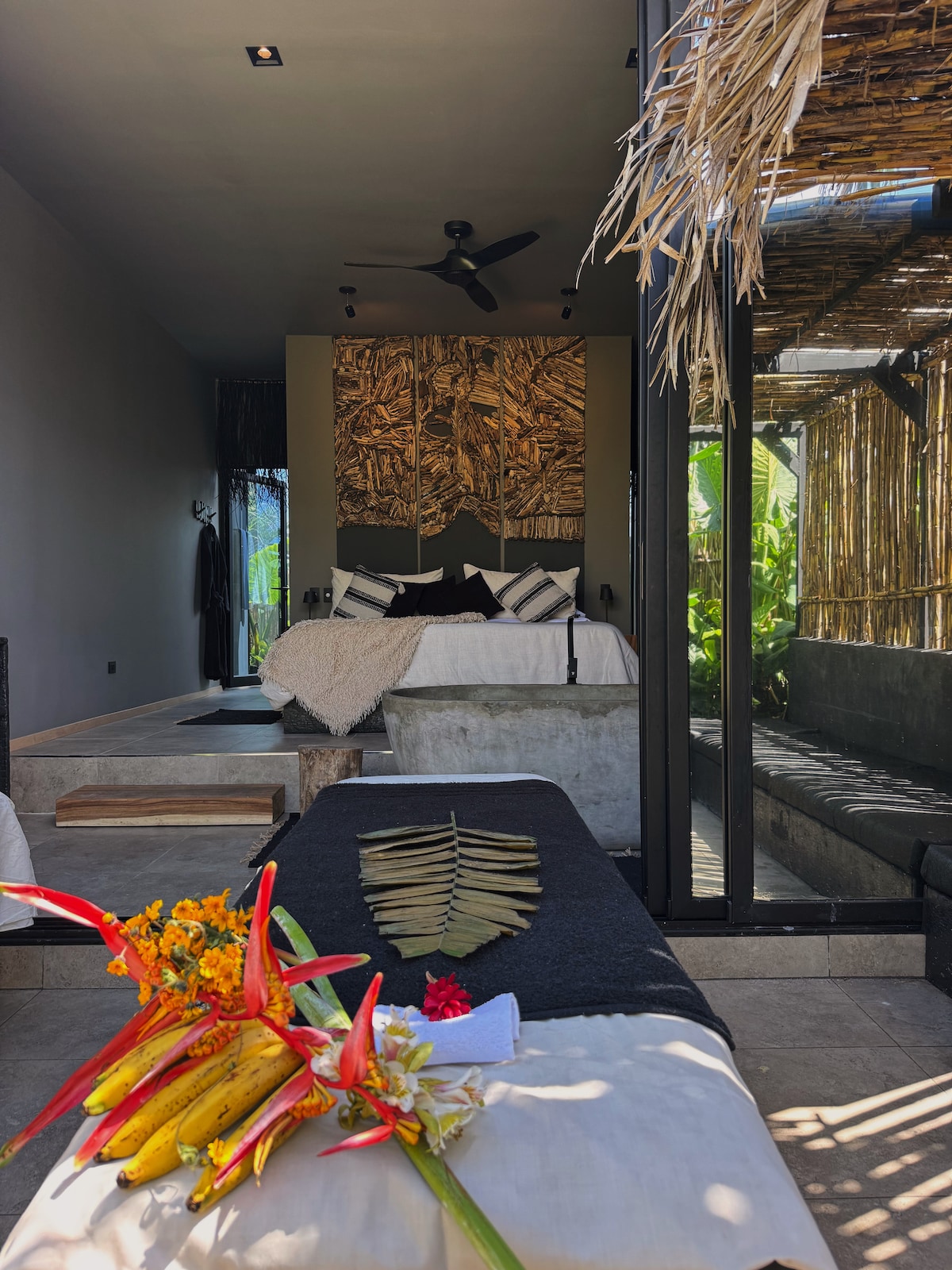 Jungle Suite – Luxury & Nature near Antigua Exclusive design suite at Vulkana Resort, inspired by Bali and Tulum. Enjoy a king-size bed, freestanding bathtub, rain shower with jungle view, and a private terrace overlooking the volcano. Perfect for couples seeking peace, style, and nature, just minutes from Antigua. 24/7 security and Wi-Fi included.