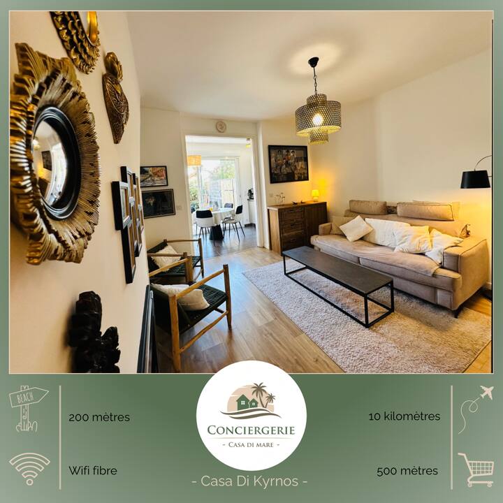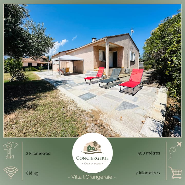 accommodation as described, perfect location 5 min walk to the beach and 10 min drive to another beach with beach bar, close to the airport about 15 min and 15 km from Bastia....