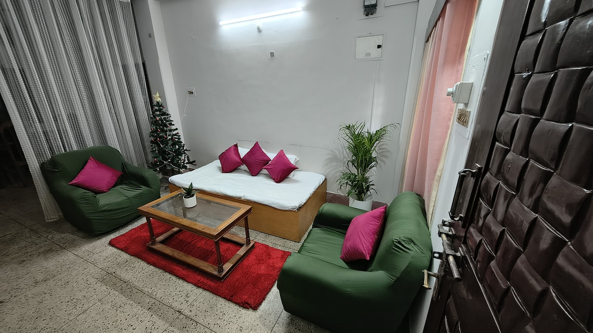 ⏰Kindly note: Check-in/out timings are fixed and changes are not possible. ✔️A spacious and private 1BHK, perfect for couples, solo travelers, or business stays. ✔️Fully furnished with a cozy living room and a comfortable bedroom. ✔️Air conditioned space for a relaxing stay in all seasons. ✔️Attached bathroom with modern fittings. ✔️Clean & hygienic, maintained to high standards. ✔️Fully equipped kitchen–cook your favorite meals with ease. ✔️Smart TV & WiFi–stay entertained and connected.