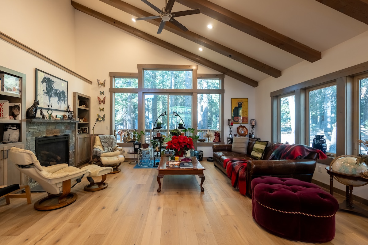 Lovingly remodeled lake home, popular location—1 block from Donner Lake piers and a quick drive to 5 ski resorts (Sugar Bowl, Palisades, NorthStar) in winter (10–20 mins), and a 5 minute drive to charming downtown Truckee! A must do 5 min walk to the lakefront brunch at Donner lake Kitchen, or cozy up with the gas fireplace, board games, pool table and an updated well stocked kitchen. Easy Bay Area access with flat driveway. Max 7 guests, 3 cars/2 in winter. Truckee STR Permit: 003384.