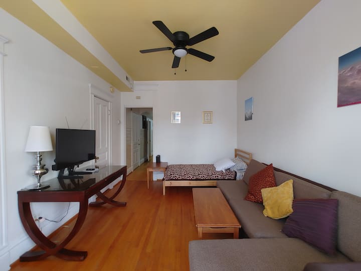 Exclusive to Airbnb guests, relax in our side-stage retreat: a playful spot to unwind, freshen up and recharge.