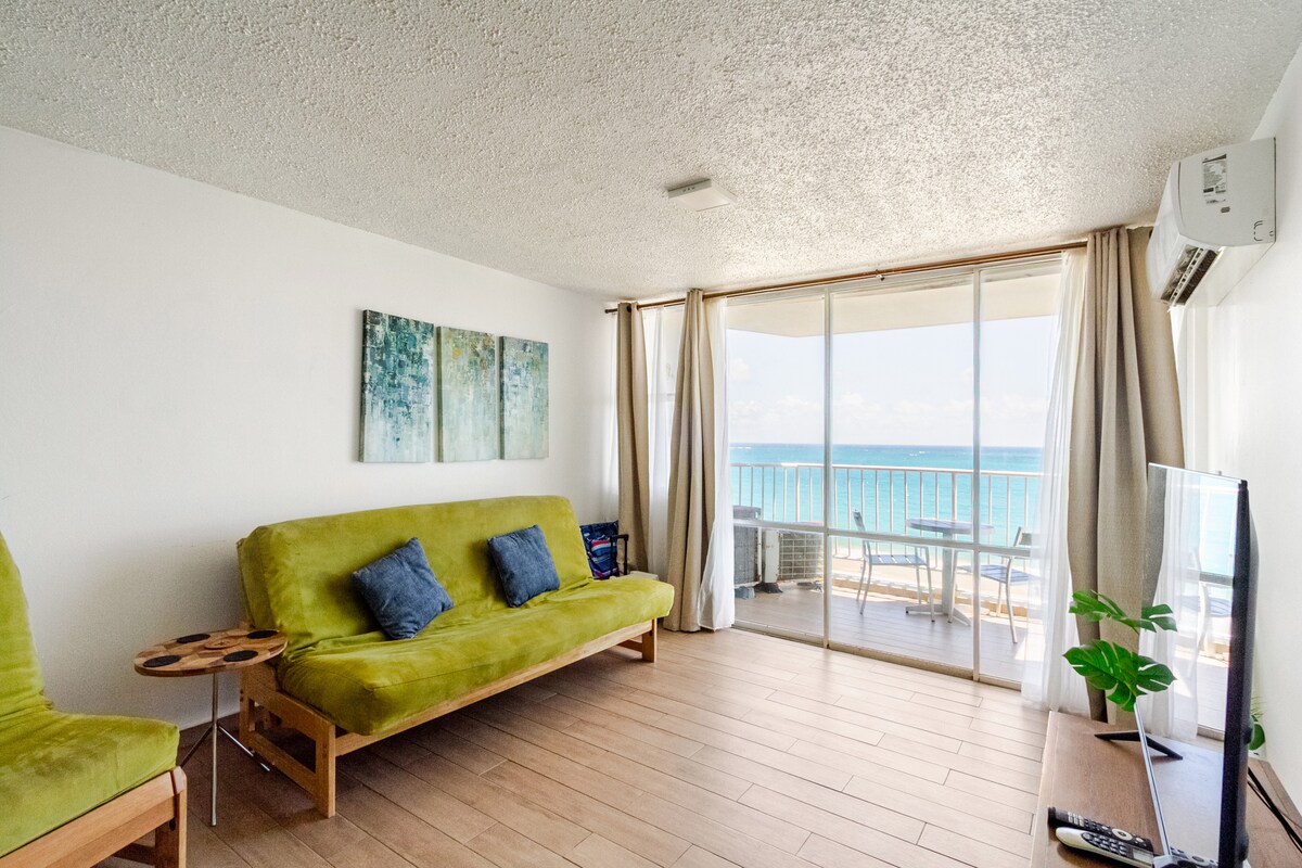 Million-dollar view—BOOK NOW! Proudly 100% Puerto Rican (and Veteran) owned. 🇵🇷 15th-floor studio w/ stunning sunsets. 5 min from SJU airport, <1 min walk from lobby to the beach! ✅ 1 free garage parking 🅿️ ✅ Self check-in ANYTIME after 3 PM ✅ Free luggage storage ✅ 24/7 supermarket 10-min walk ✅ Lobby café & bar 🧺 Paid laundry in basement. ❌ No pool ❌ No early check-in/out