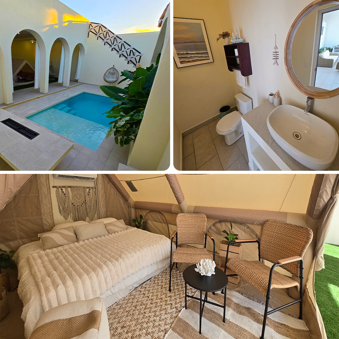 Luna Rossa, Villa de Playa Boutique con acabados que resaltan el estilo Boho Chic con espacios amplios y todas las comodidades necesarias para tener una estadía de primera clase y una experiencia única, con sabanas de 550 hilos y 2 piscinas privadas tu descanso, tu celebración o Luna de miel será inolvidable. Contamos con 3 increíbles suites, 2 double suite y 1 Master Suite, 3 baños , cocina, sala con AC y comedor al lado de la piscina que harán de tus comidas una increíble experiencia.