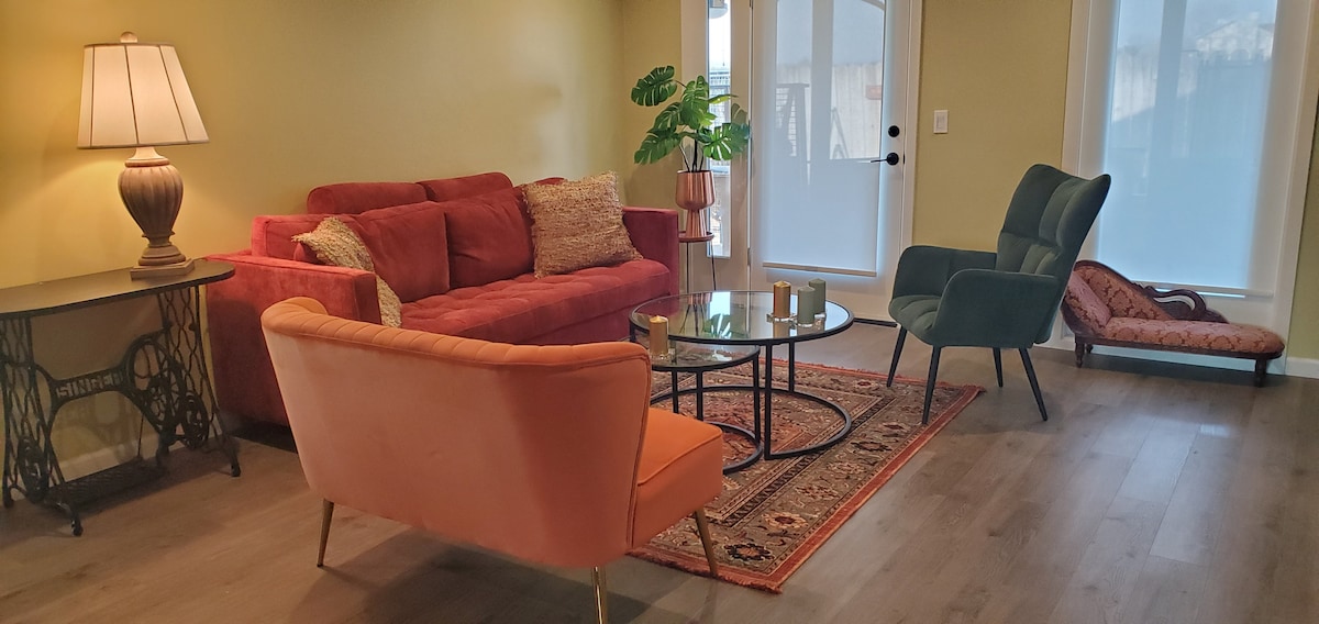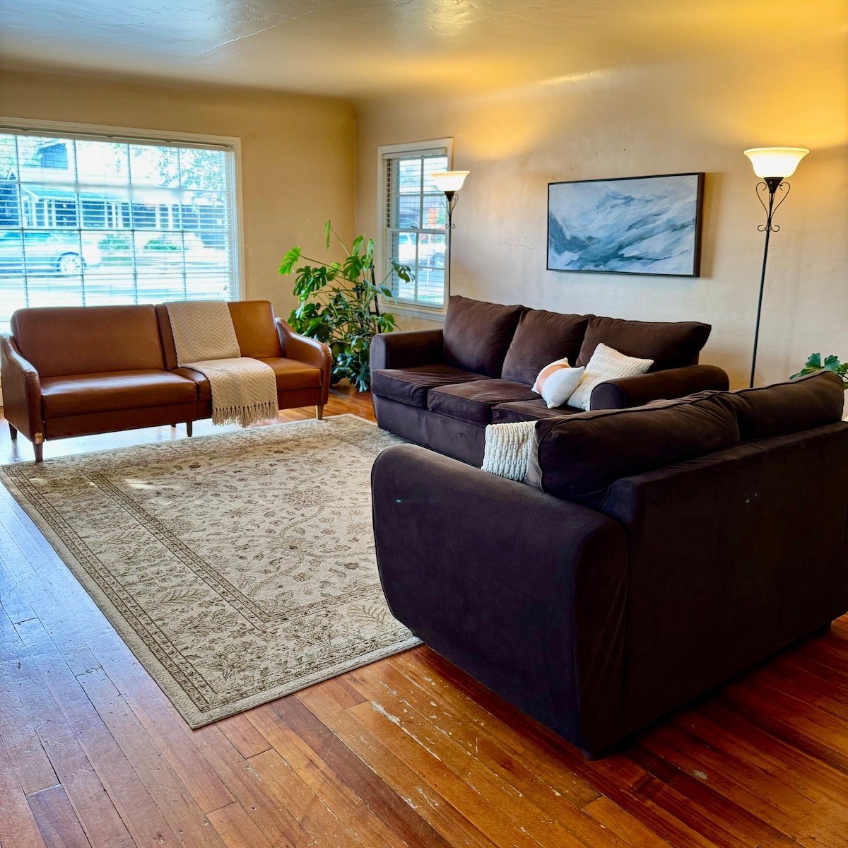 Stay at our modern guest suite in Visalia, just 40 minutes from Sequoia National Park entrance and blocks from downtown. Accommodates up to 3 guests—ideal for small families, couples, or solo travelers. Features a king-size bed, optional rollaway single bed (upon request) ideal for children or smaller adults, cozy living area, kitchenette, dedicated workspace with high-speed Wi-Fi, and walk-in shower. In a safe neighborhood near a scenic park with trails—perfect base for Sequoia adventures.