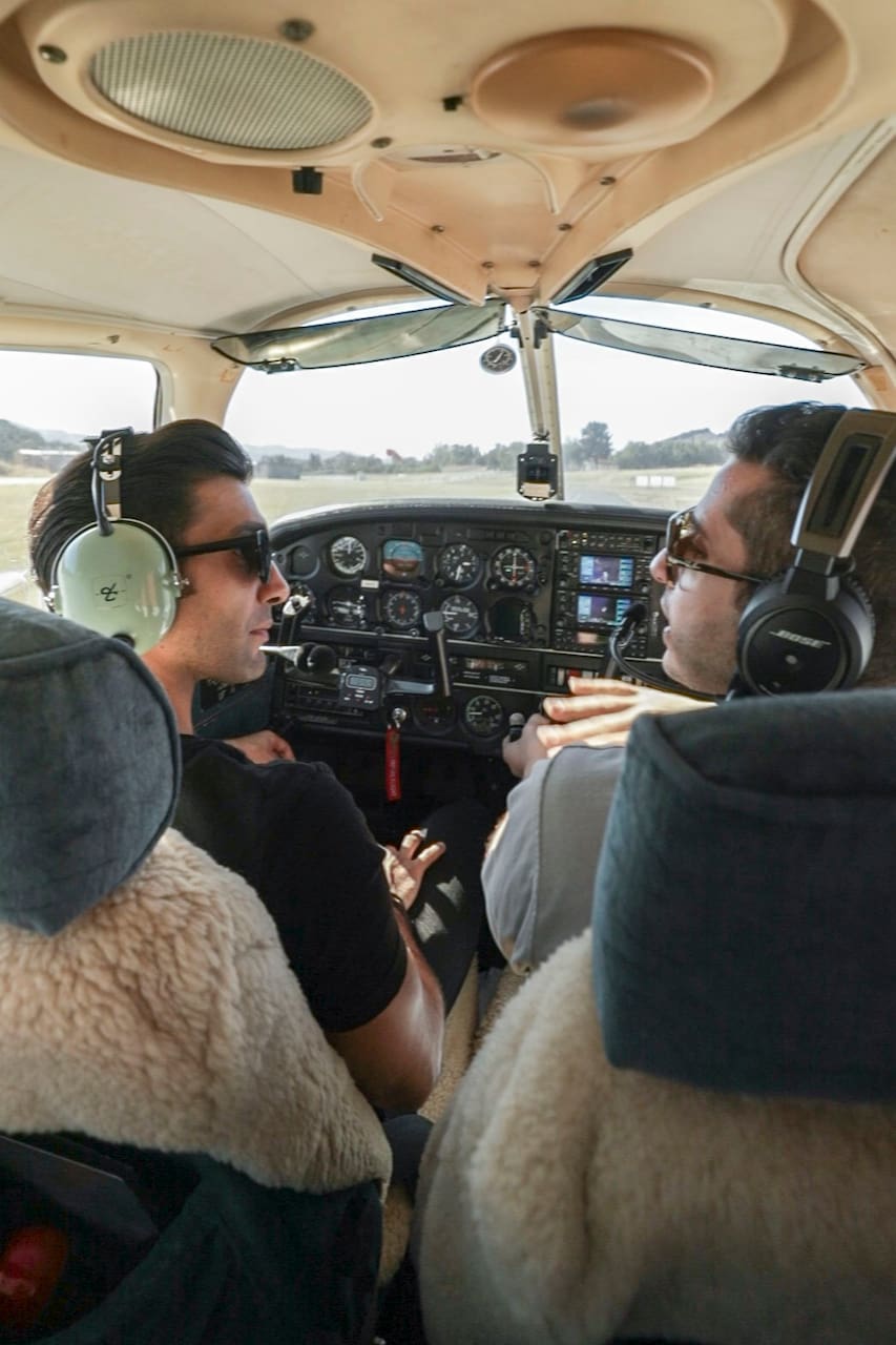Once you’re on board, the pilot will give you an overview of the instruments and controls. After getting clearance from the tower, you’ll taxi to the runway for takeoff. Once at cruising altitude, you’ll learn basic introductory skills in the training area over the Simi Valley.