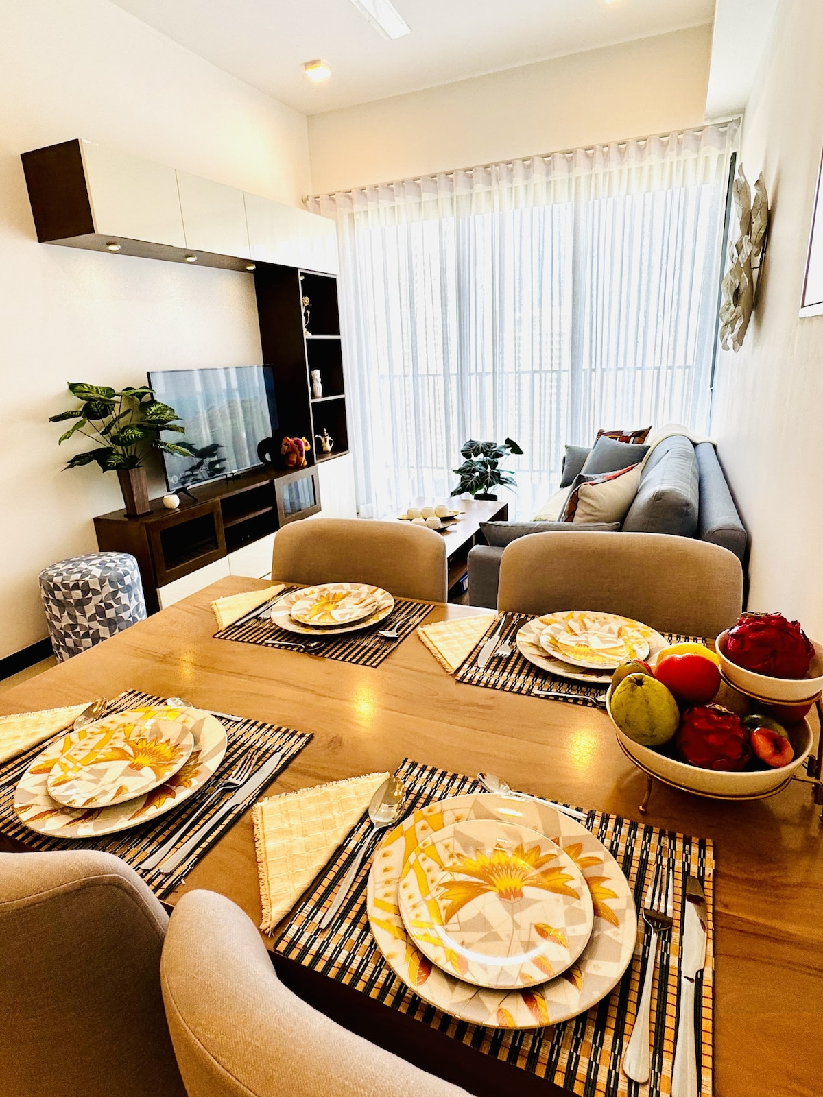 Welcome to your exquisite retreat in the sky! Our luxurious 2BR Unit on the 8th floor of Cinnamon Life Suites offers a perfect blend of modern elegance and comfort. Nestled in the heart of the city, this stylish haven provides stunning panoramic views, sophisticated amenities, and unparalleled convenience for both leisure and business travelers. Our elegant apartment provides the perfect base for your urban adventure. Experience the best of luxury living where comfort meets sophistication.