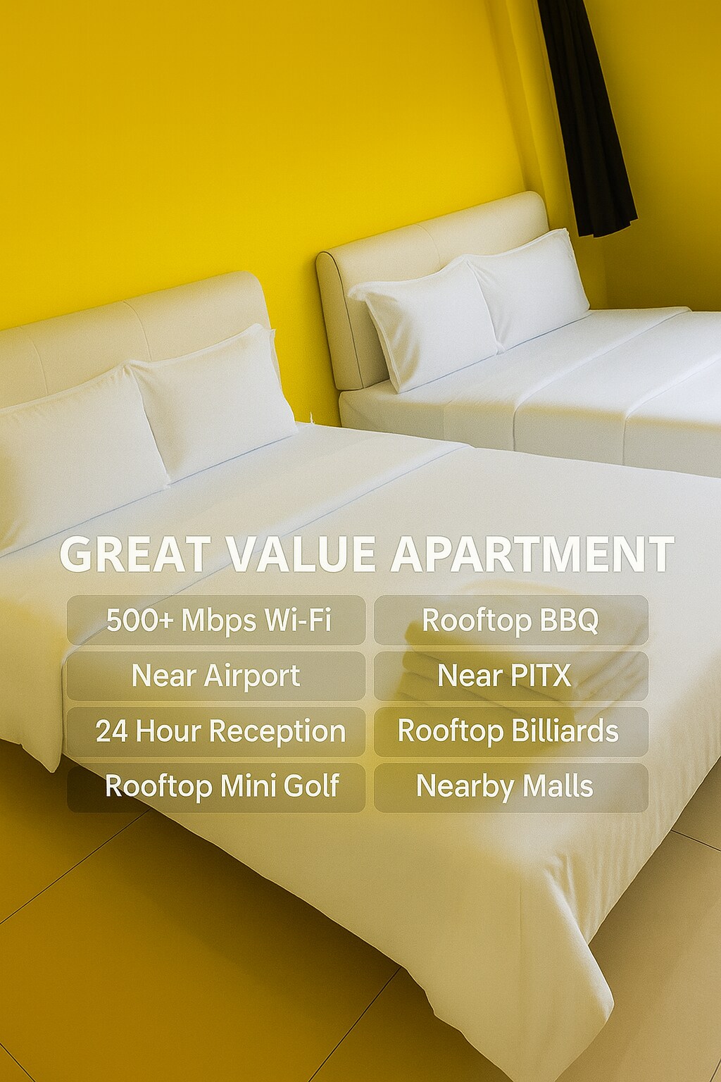 k105 Stylish Twin Room • Walk to Parqal & Airport