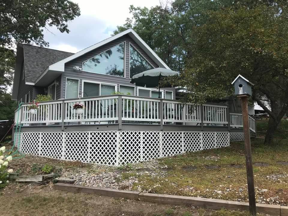 This Up North home, with our sister one next door on its own private lot (book separately), are the ONLY ones on Margrethe on a natural hill, providing exclusive elevated lake views, with a bonus wide, flat lakeside area. Uniquely private on a street with only 3 homes, ours are separated from that 3rd non-lakefront one by a wooded lot. Experience the tranquility of a natural setting, with a dock and "gazebo"! New kitchen, flooring, beds, leather sofas, W/D, back-up generator. Boat ramp close by.