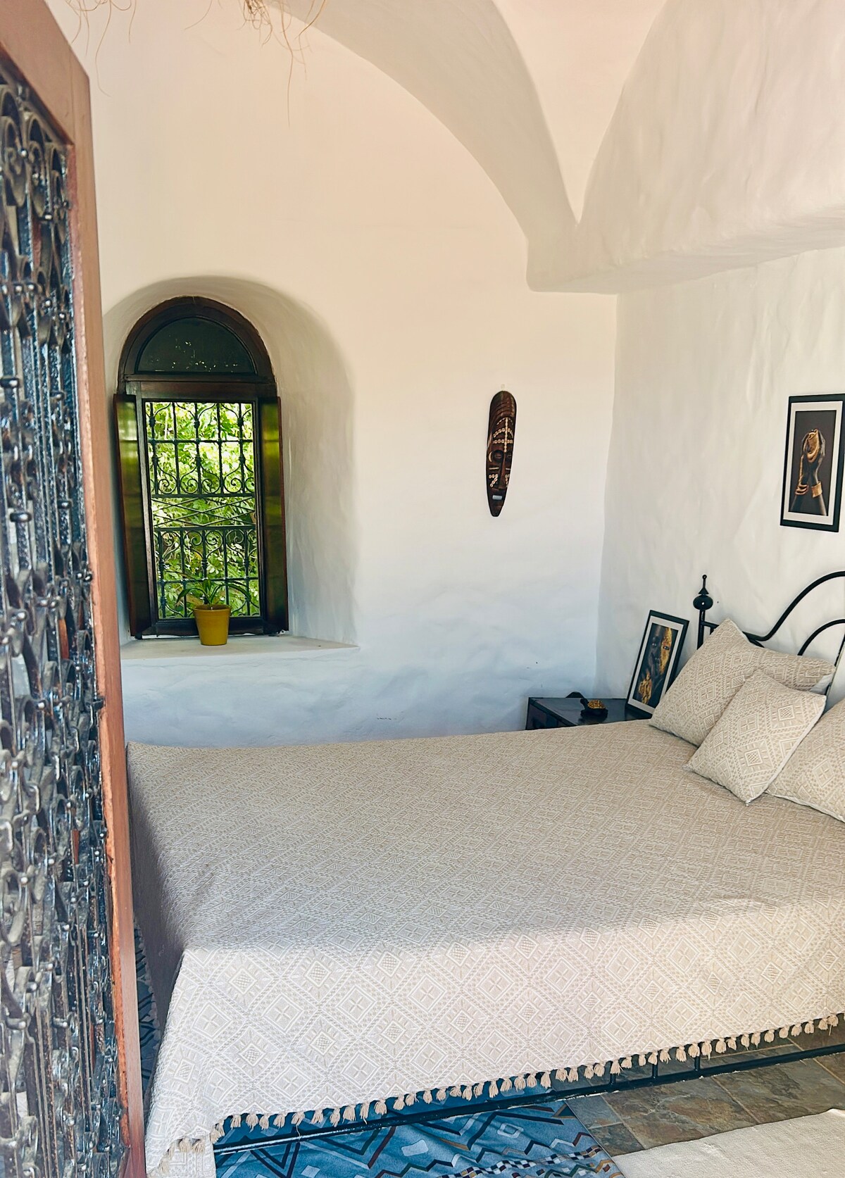 Villa Maya, both close to the city center (20mn walk), the beach and the Sindbad hotel (500m), isolated from the noise of the city and traffic. Private entrance and pool, at the edge of an oued bed shaded by eucalyptus and protected by a fence. Peace and security (guaranteed by an outside surveillance camera). Two other cameras are turned off, one overlooking the pool and front door, the other backyard, garden side. No camera indoors.