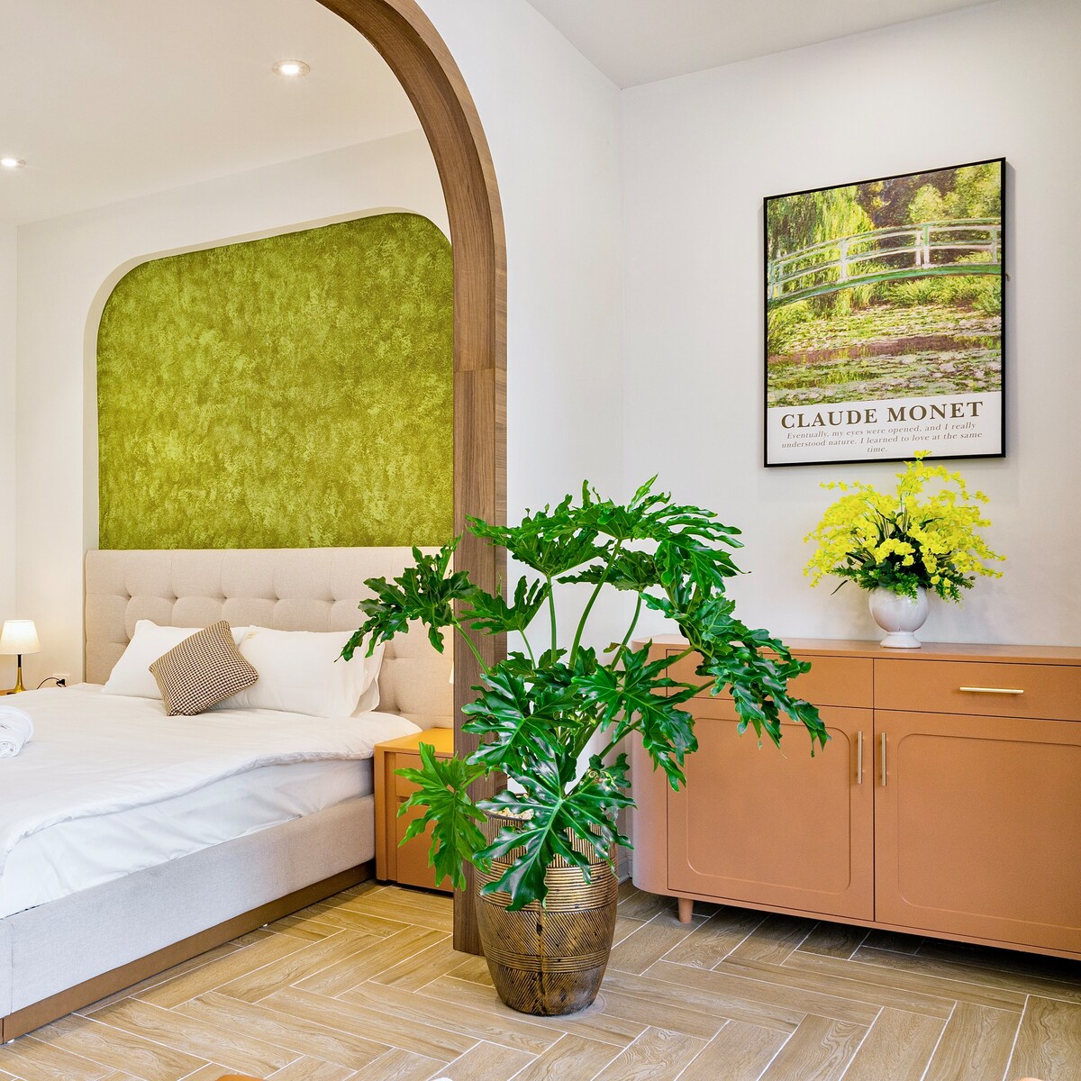 Palm House has 5 rooms(1room per floor). Room includes 1 Queen size bed, dining table, work/office table, 1 kitchenette area(just dish ware set), private bathroom, also wifi and smart TV. On the 4,5,6th rooms have a bathtub. !!! Because the 2nd and 3rd floors are low, it’s easy to hear the noise from outside. Be flexible to arrange a reasonable sleeping place for family members.