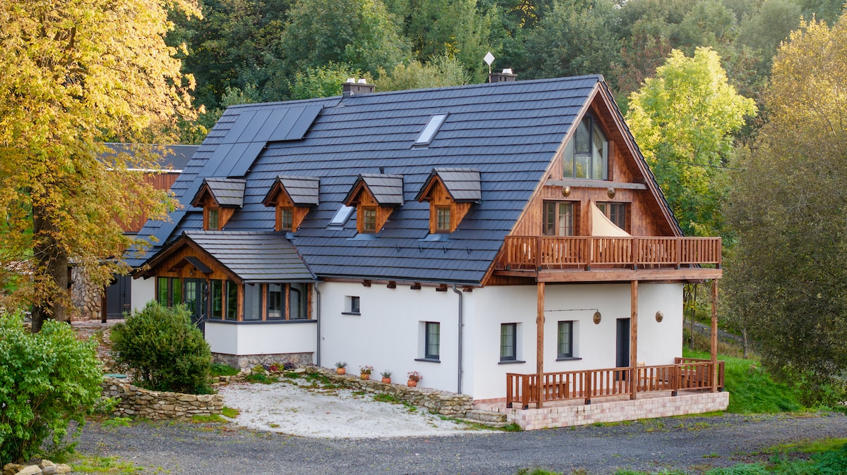 Imagine the silence interrupted only by the rustle of trees and the singing of birds. The warmth of the fireplace, the smell of the forest, morning coffee on the terrace overlooking the mountains. Zacisze pod Śmielcem is not just an accommodation – it is a space where you can really breathe. Here you will regain peace, feel the closeness of nature and yourself. If you dream of a place where everything slows down - you've just found it. And in addition, you are only 200 meters from the border of KPN and literally three steps from the trails leading to the high parts of the Karkonosze Mountains.