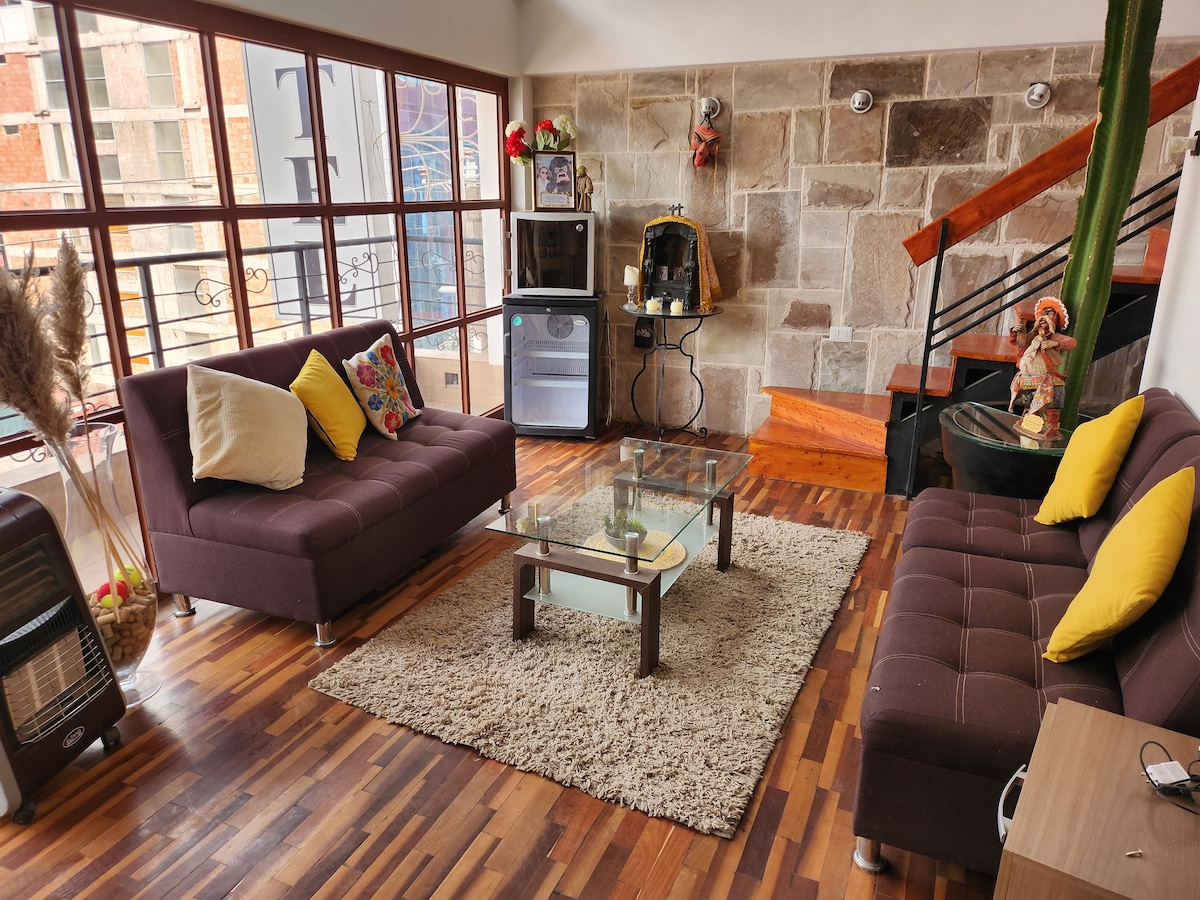 Modern and comfortable studio located in a central area of Cusco, where you can find supermarkets, restaurants, pharmacies, banks and financial institutions, exchange houses, health clinics and others very close by. Simple, functional, cozy and well-lit modern decor. A room with Wi-Fi, Netflix, Magic Cable, comfortable sofa, fully stocked kitchenette, shower with plenty of hot water 24 hours a day, terrace with umbrella and panoramic view of the city.