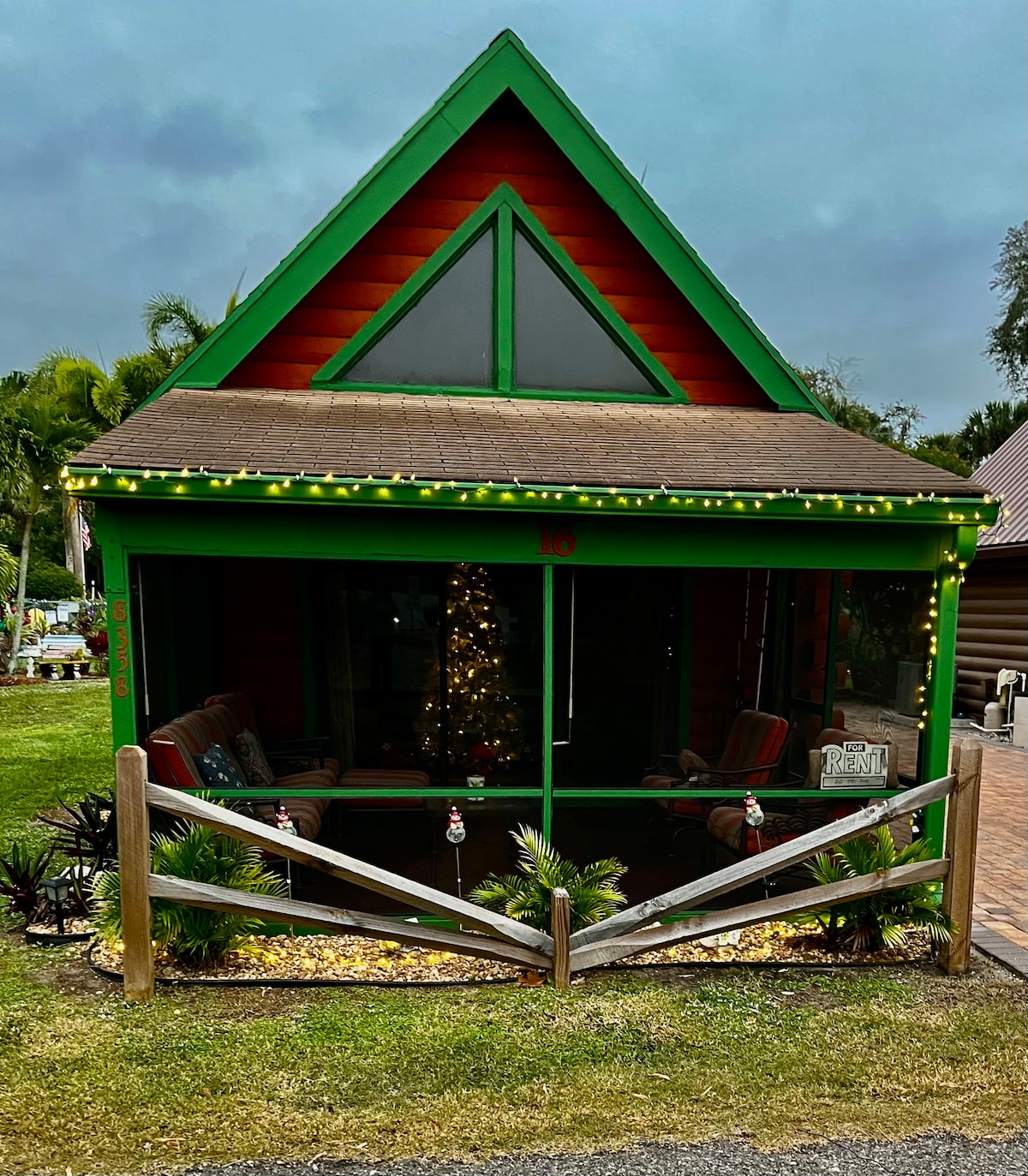 Gingerbread Cozy Lakeside Cabin with Stunning Sunsets on the rim canal of Lake Okeechobee surrounded by beautiful landscaping. Grill on the BBQ, make smores in the shared firepits, enjoy a nice lunch on a picnic table, sip a cup of coffee or tea in the screened in porch, or go for a swim in the heated saltwater community pool. Bring your fishing boat and park it in one of the docks (first come, first serve) and enjoy fishing. (Host has fishing rods). There is also a fish cleaning station.