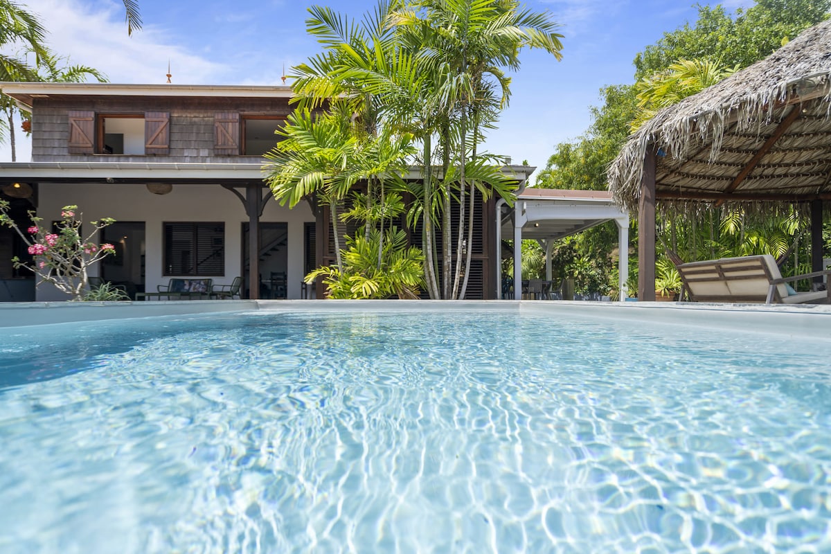 Magnificent villa for 6 people with its swimming pool, barbecue area and lounge area. Located in the south of the island, it enjoys the relaxing calm of the countryside and a clear view of an old sugar cane plantation. You will be charmed by this spacious, single-storey villa, not overlooked, with its private parking. The most beautiful beaches on the island are 10 minutes away by car. The village, with its restaurants and shops, its marina (the largest in the Caribbean), are 5 minutes away.