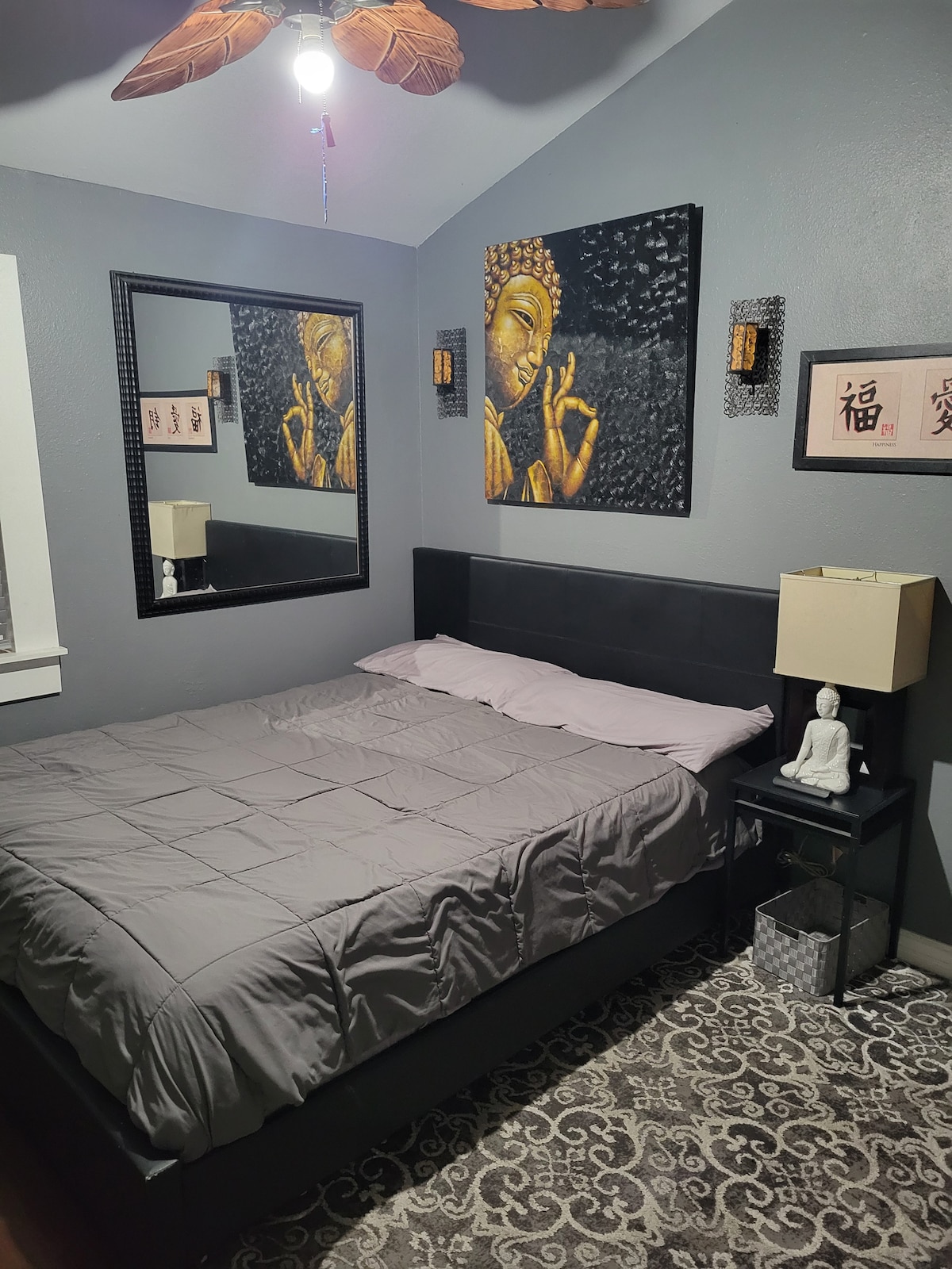 Come soak up the artsy feel of this cozy renovated guest suite with private entrance/ private large bathroom/parking ideally located in the middle of town close to SDSU. Roll out of bed and Enjoy a cup of coffee in a stylish patio, then explore ALL of the city’s top attractions a short drive away. This cozy retreat is clean, crisp, and fully renovated with great style, Van Gogh's 'Starry Night' hand painted mural and original art, uniquely curated by one of SD’s most established artists.*Enjoy*
