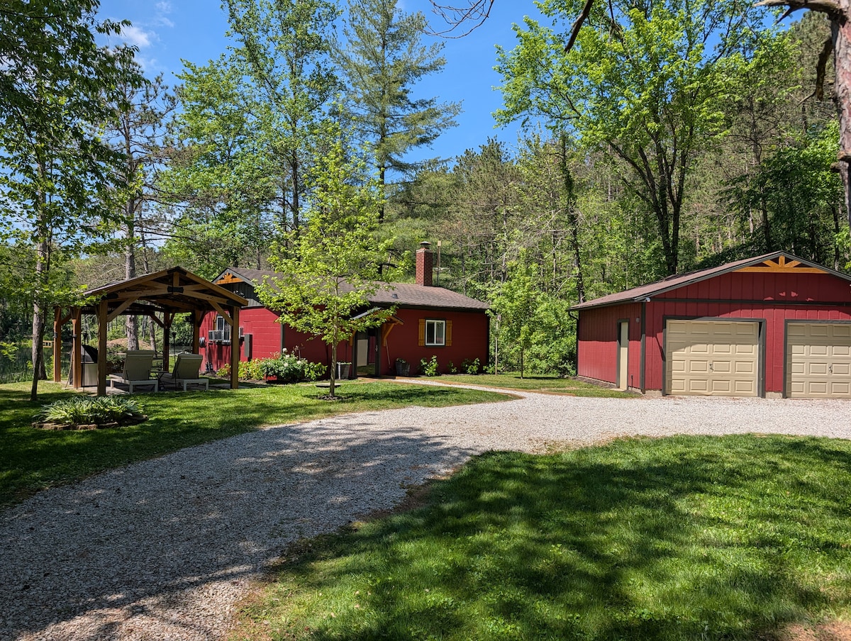 Log Cabin + Guest House on a Pond with Hot Tub