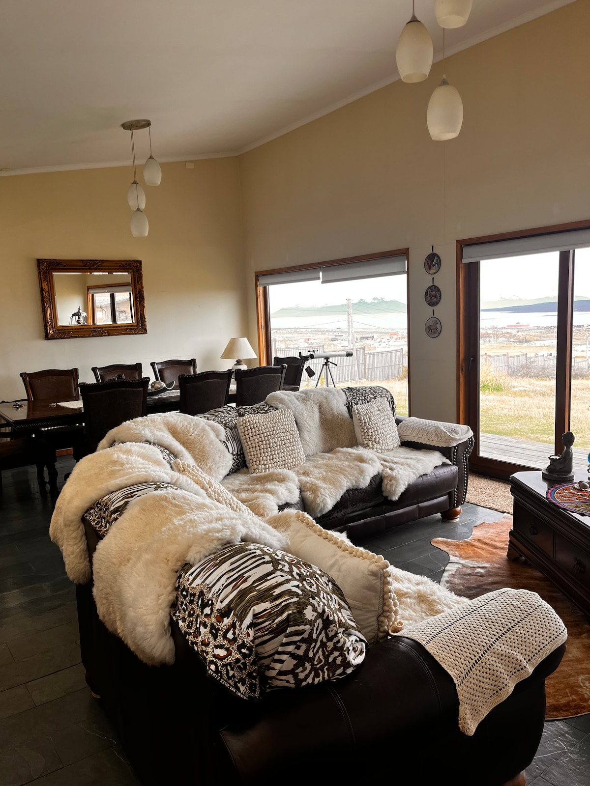 A newly built family house in the countryside , 10 minutes by car from the city center, and 5 minutes from the bus terminal, with a wide panorama over the Ultima Esperanza canal, Puerto Natales , the Balmaceda glacier and the Dorotea. You can enjoy this beautiful view and rest as if you were in your own home. You are welcome.