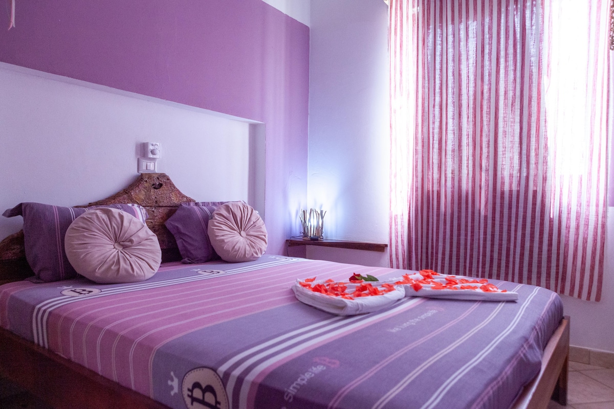 Mini appartamento ( circa 28 m2) situato al piano terra dell'edificio " Casa Carlotta". Ci sono 2 camere ( una matrimoniale e una singola) con un bagno privato. E' stato completamente rinnovato ad aprile 2022: colorando le pareti con splendide tonalità violette e arrendendolo con una grande attenzione ai dettagli. A disposizione della clientela, un grazioso spazio comune con tavolini, piante e una piccola libreria. Wi-fi funzionante.