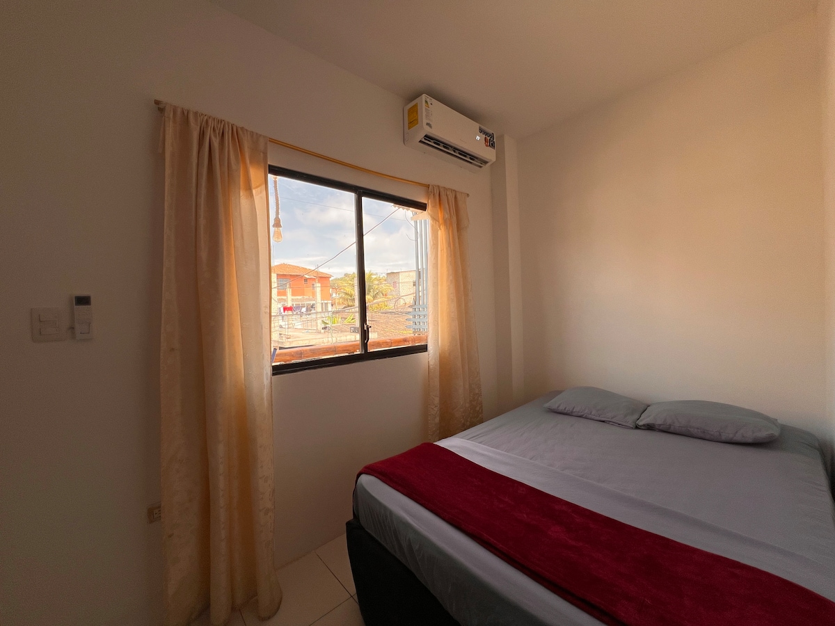 The apartment is independent, safe, furnished. Located two blocks from the Mall del Pacífico, two blocks from El Murciélago beach, one block from Flavio Reyes where you can find restaurants, pharmacies, bars, supermarkets, ATMs, wide sidewalks to walk comfortably. The equipment may be completed at the guest's choice. The neighborhood is quiet and safe. With door-to-door taxi service and urban buses. Ideal for relaxing.