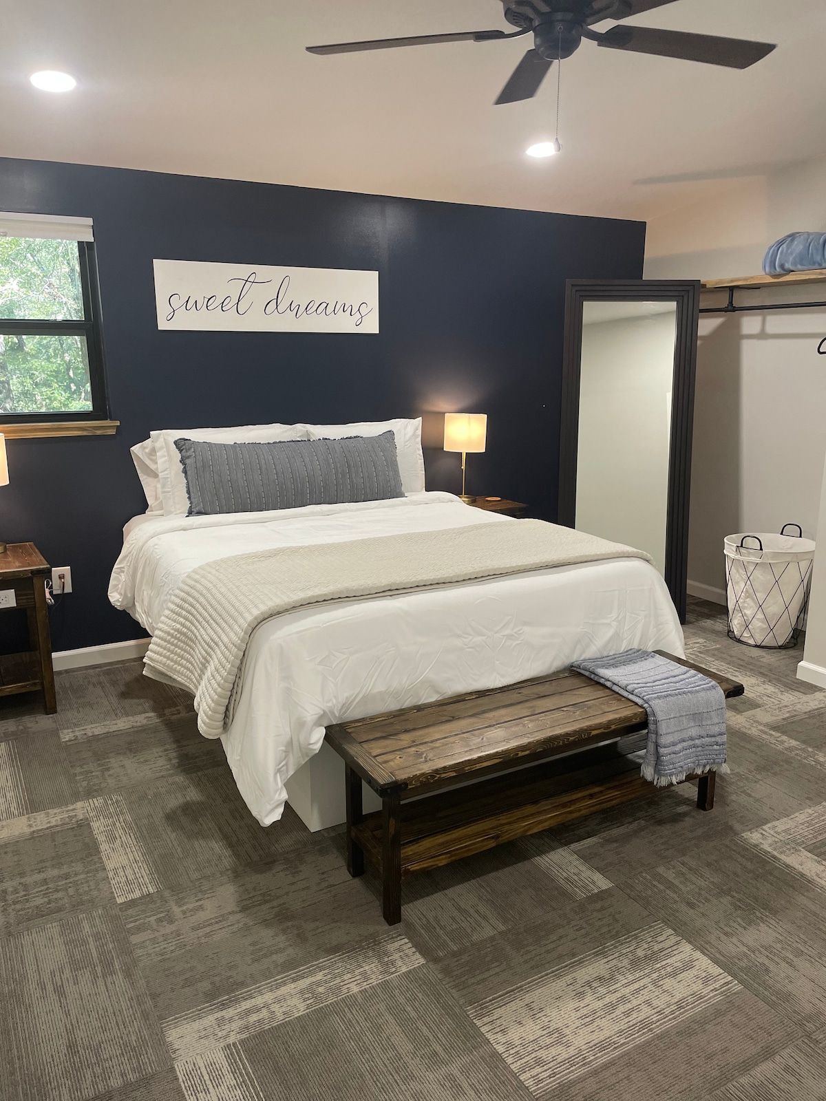 Welcome to our 1930 Artsy Suite, a unique retreat blending, luxury, comfort, and art. Enjoy the original clawfoot tub, custom Stern & Foster mattress, and private porch with serene garden views. Surrounded by one-of-a-kind artworks, this dog-friendly suite features a fully fenced yard for your furry friends. Private entrance, a laundry room, and a focus on comfort and relaxation, As seen on HGTV Hometown season 6 episode 2. Our space offers a truly unforgettable stay.