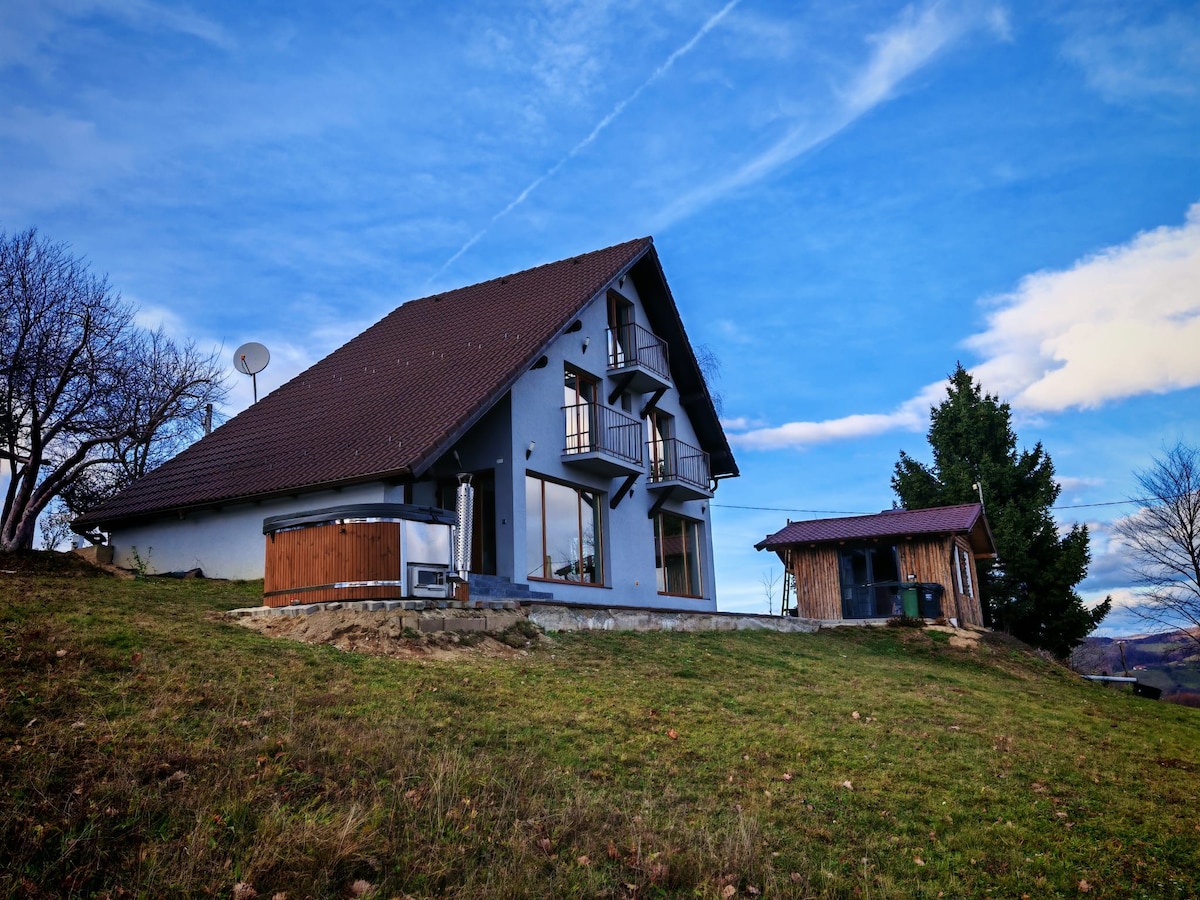 The house is located 2.5 km from Bran Castle in Simon village. It is not located near the street (50 m to climb on a hill - accessible road by car). It has 3 bedrooms, 3 bathrooms (one bedroom with en suite bathrooms, the other two bedrooms share a bathroom and one bathroom are on the ground floor), a large living room and fully equipped kitchen (including with dishwasher). We also have a gazebo and barbecue arranged.