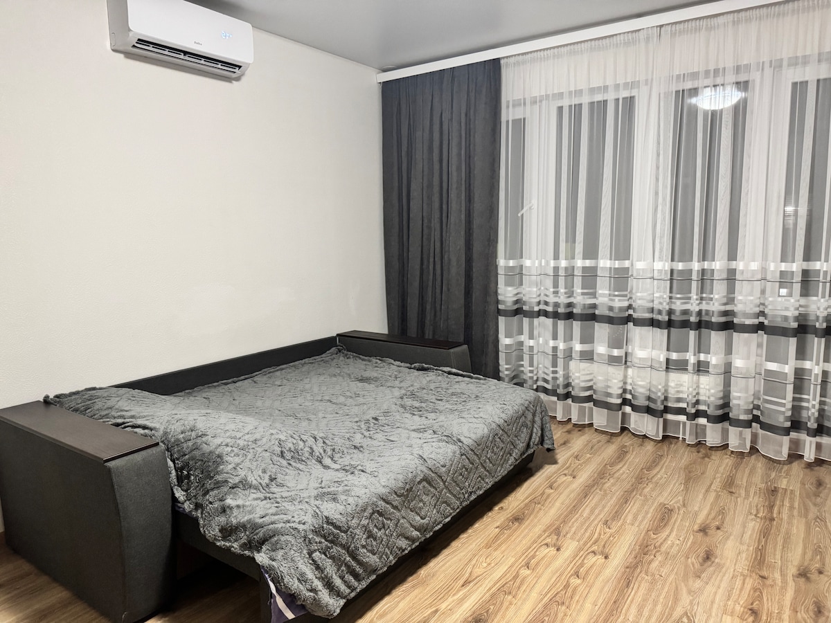 Cozy apartment with a balcony and modern appliances. We offer a stylish and comfortable apartment for a comfortable stay. A spacious balcony with a view where you can enjoy the fresh air awaits you. There is a playground in the yard, which is especially convenient for guests with children. The kitchen is equipped with a fridge, microwave, and everything you need for cooking. Wi-Fi, large 50-inch Smart TV. The apartment has a shower, bathtub, toilet. Large loft bed. 10 minutes to the supermarket.