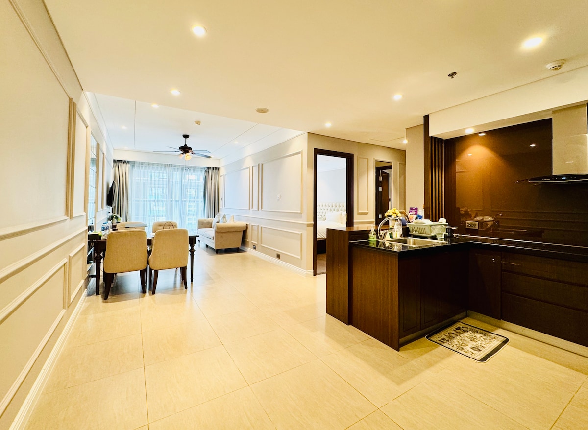Experience the fabulous side ocean views in our modern 2-bedroom apartment. There are balconies in both the living room and bedroom. The fully equipped kitchen allows you to cook just like at home and we also have washing machine and dryer. My Khe Beach is located just 50m away from the apartment and guests can use infinity pool on the 33rd floor of the building with some extra cost (100.000vnd/person) as well As the gym and sauna (200.000/person)