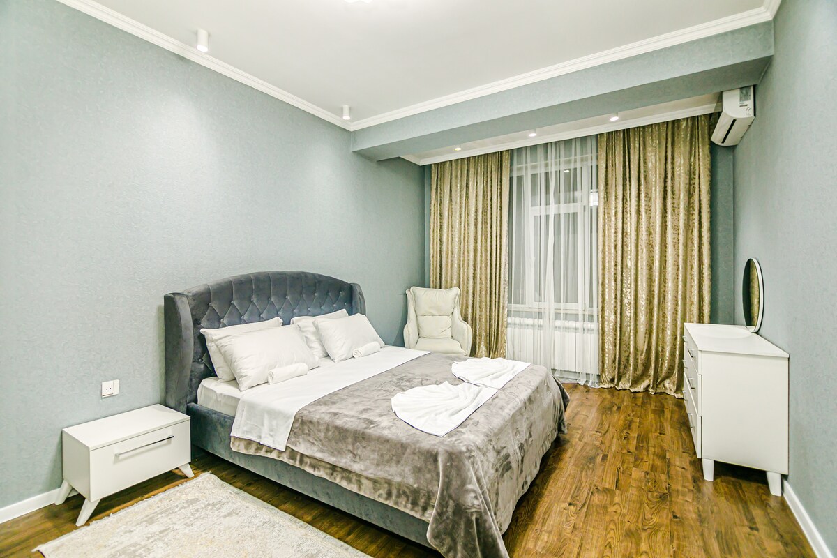 Luxury apartment by the sea in a prestigious district of Baku. Enjoy the beautiful view from the balcony or relax in the cozy living room. There are many restaurants, shops and entertainment near the house. The apartment is equipped with everything you need for a comfortable stay: a comfortable bed, a folding sofa, a TV, air conditioning, a kitchen with all the necessary utensils and appliances, a bathroom with a shower and a washing machine. Free WiFi is available in the apartment, which allows you to stay connected and work remotely.