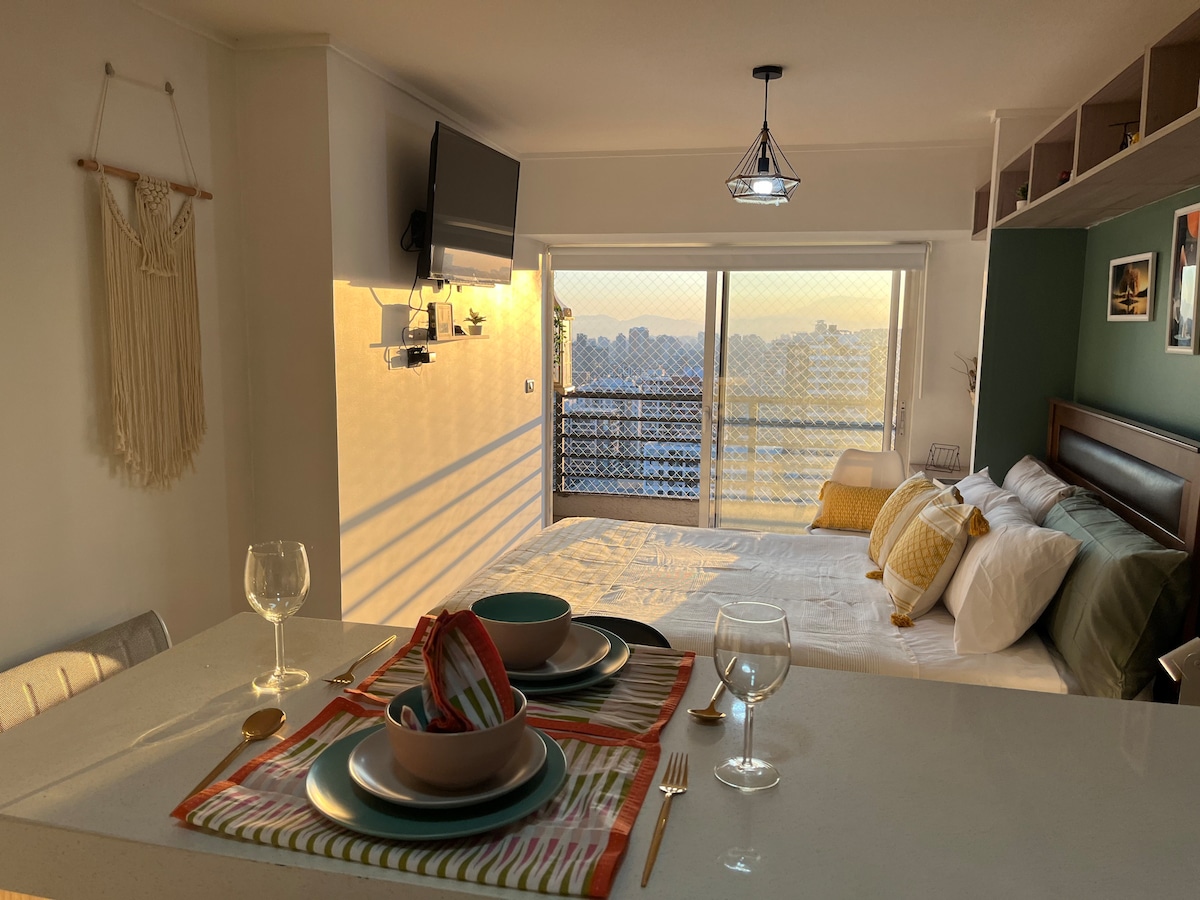 ¡Disfruta de una estancia inolvidable en nuestro hermoso departamento! Totalmente equipado, con Wi-Fi (perfecto para teletrabajo), cocina full equipada, habitación acogedora y estacionamiento privado dentro de las instalaciones. 📍 Ubicación: A 8 minutos caminando del metro Ñuble (línea 5 y línea 6). 🛏️ Capacidad: Hasta 2 personas ✨ Servicios: Wi-Fi, televisión, Netflix, ropa de cama, toallas, utensilios de cocina y más. ¡Tu hogar lejos de casa te espera!