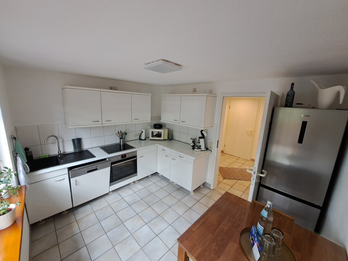 Welcome to our apartment in the Black Forest! Space for 4 people, quiet but central. Features 1 bedroom, living area with sofa bed, open kitchen with dining area, bathroom and terrace. Linens and towels are provided. Suitable for couples, families or groups of travelers. Due to the proximity to the highway (A5), it is ideal for travelers. Contactless self check-in for flexible arrival and departure. Train station, shopping and public transportation nearby.