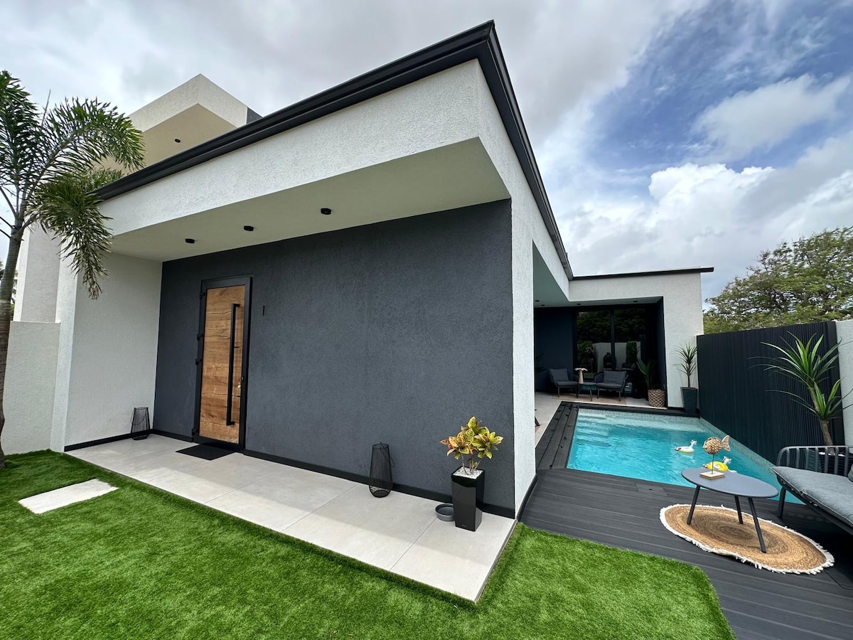This modern villa provides you with an unique experience it’s as simple as asking Alexa” start my vacation” Located near the best beaches, restaurants and supermarkets on the island The villa has a fully equipped kitchen, amazing garden, outside seating area with BBQ relaxing pool and outside shower. The inside features a modern home with smart devices making your vacation a unique one Your vacation starts here!