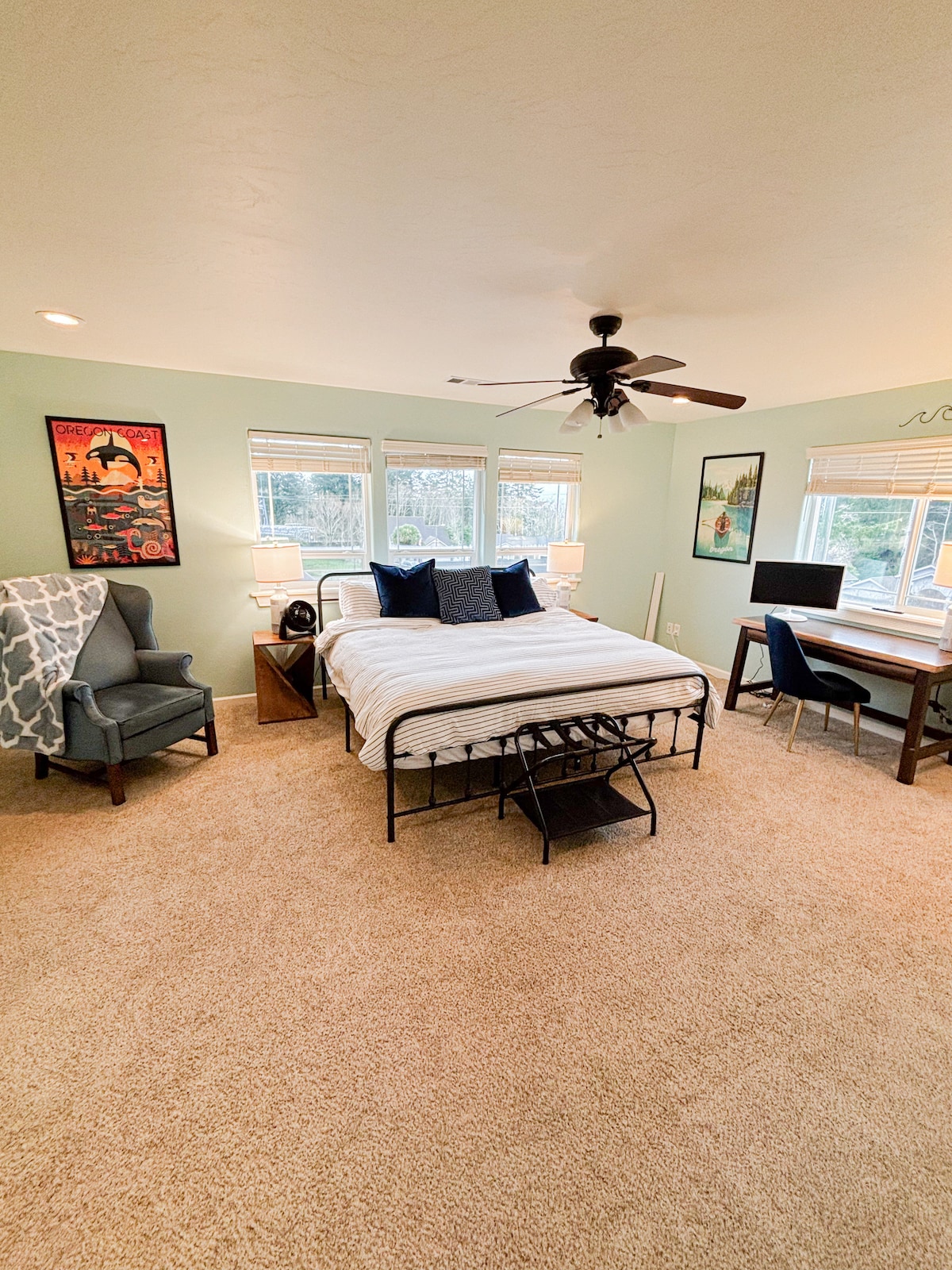 Keep it simple at this peaceful and centrally-located place. Tucked away in a very quiet safe location . Your room and courtyard is attached to the garage but private and separate from our home next to it. Only .3 of a mile to the boat ramp, Zolas, Fat Irish, Hwy 101 and Port of Brookings boardwalk. Queen bed, private toilet and shower. Room is 215sq ft, please note the coffee maker, fridge is in the bathroom area, please only book if you’re ok with this. Park right outside your room. Thx