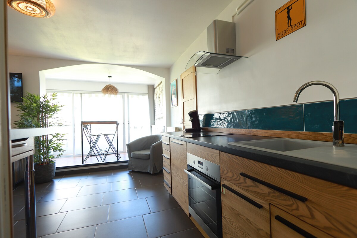 ☆Nice air-conditioned studio 2 minutes from the beach ☼ + parking
