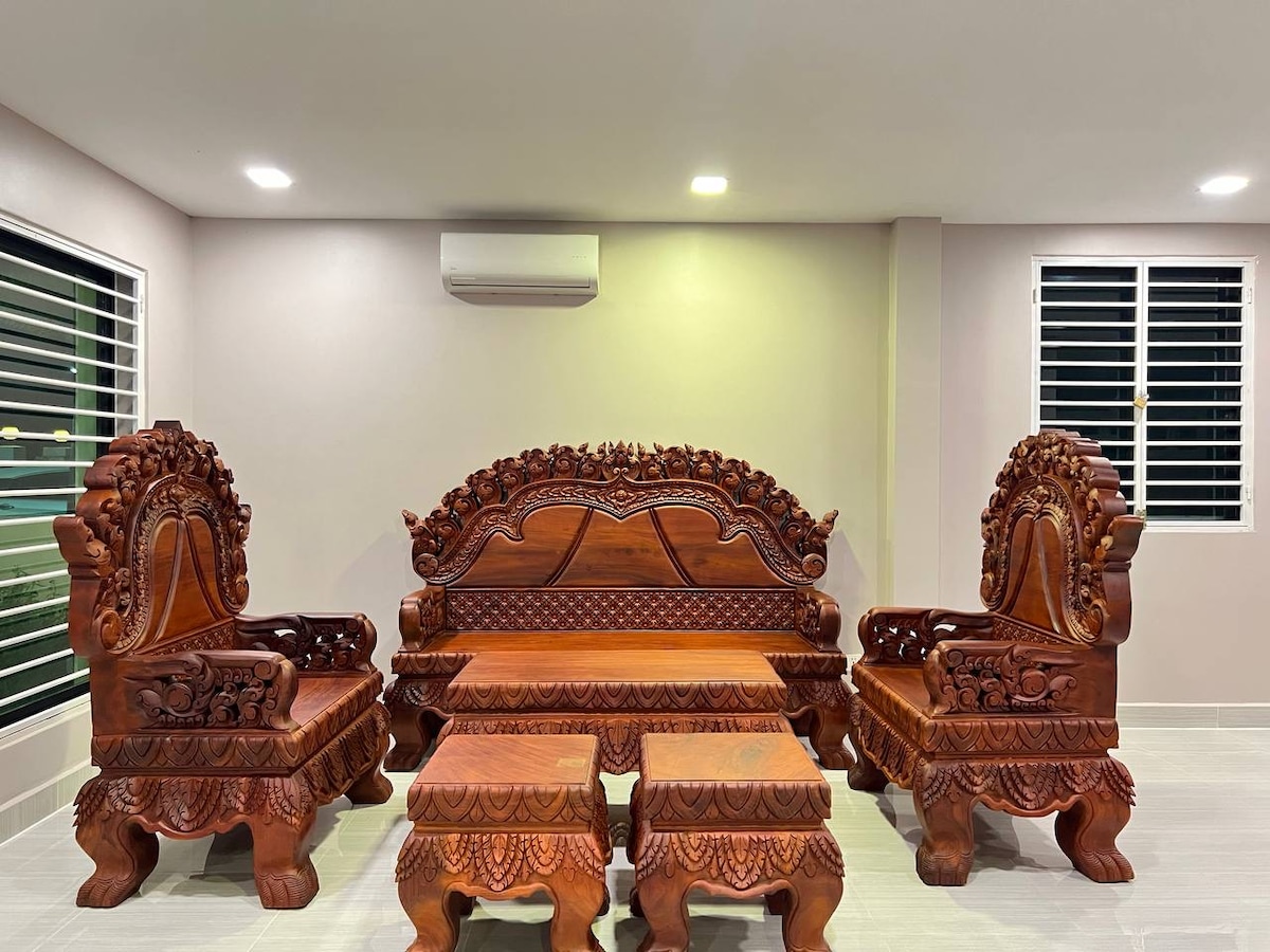 Stay in our 100-year-old colonial villa, once owned by the King. Featuring original 1920s hardwood floors and a terrace with red-and-white tiles, it blends heritage charm with modern comfort. Relax by the pool or in the tranquil garden of mango, jackfruit, longan, and wax apple trees, often visited by playful squirrels. Nestled in an exclusive neighbourhood near embassies, the Independence Monument, and the Prime Minister’s residence. A truly unique stay in Phnom Penh.