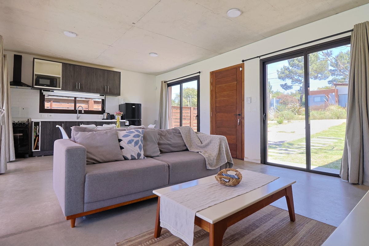 Cozy cabin in the woods of Punta Ballena. Ideal to get away and relax in a natural and very peaceful setting. Steps away from the Lussich Arboretum, ideal for hikes, rides, and enjoying a coffee with a delicious La Checa cake. Minutes from Solanas, Tío Tom, Las Grutas, and Chihuahua beaches. We have a set of sun loungers and a parasol with UV protection. In winter we'll wait for you with the fire lit. The house is fully furnished to make you feel at home.